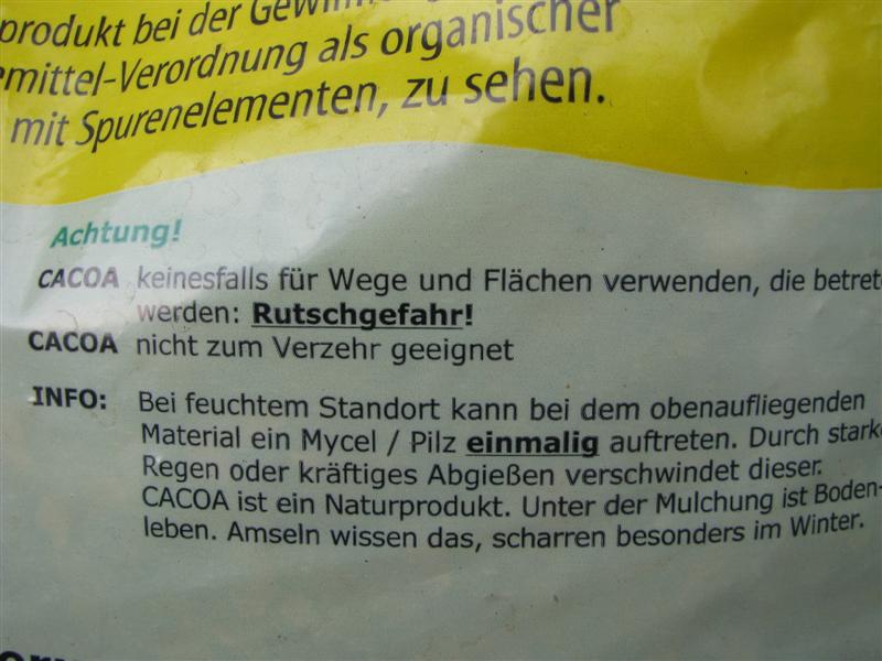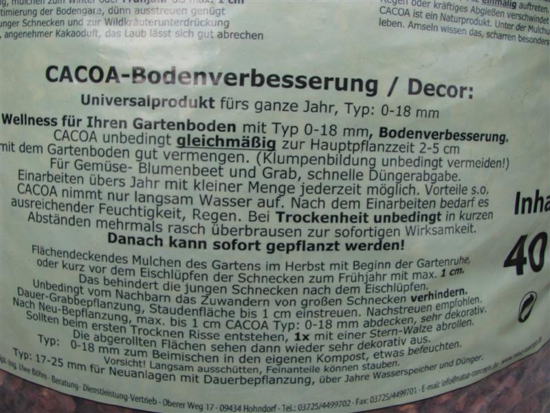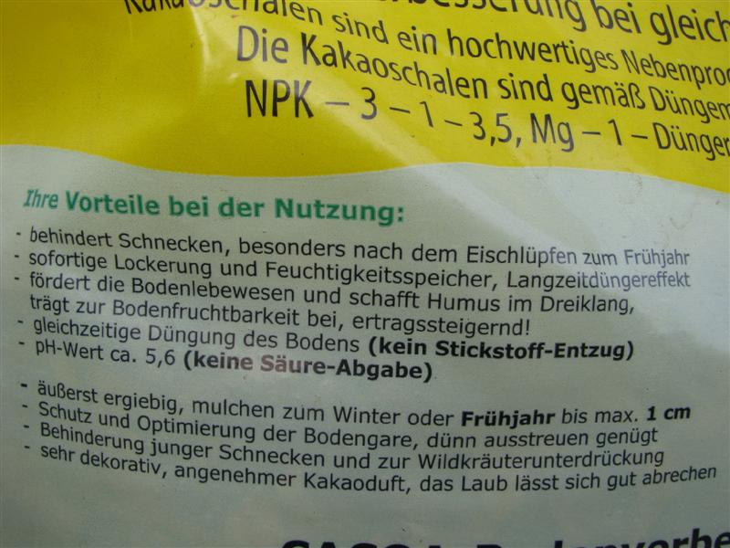 Zudem duftet das Zeug noch gut nach Kakao und dient auch noch der Bodenverbesserung.