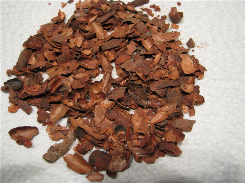 Kakaoschalen, die bei der Kakaoernte abfallen, werden auf die Beete gestreut oder als Begrenzung ausgelegt und sollen das Eindringen von Schnecken und deren Eiablage verhindern.