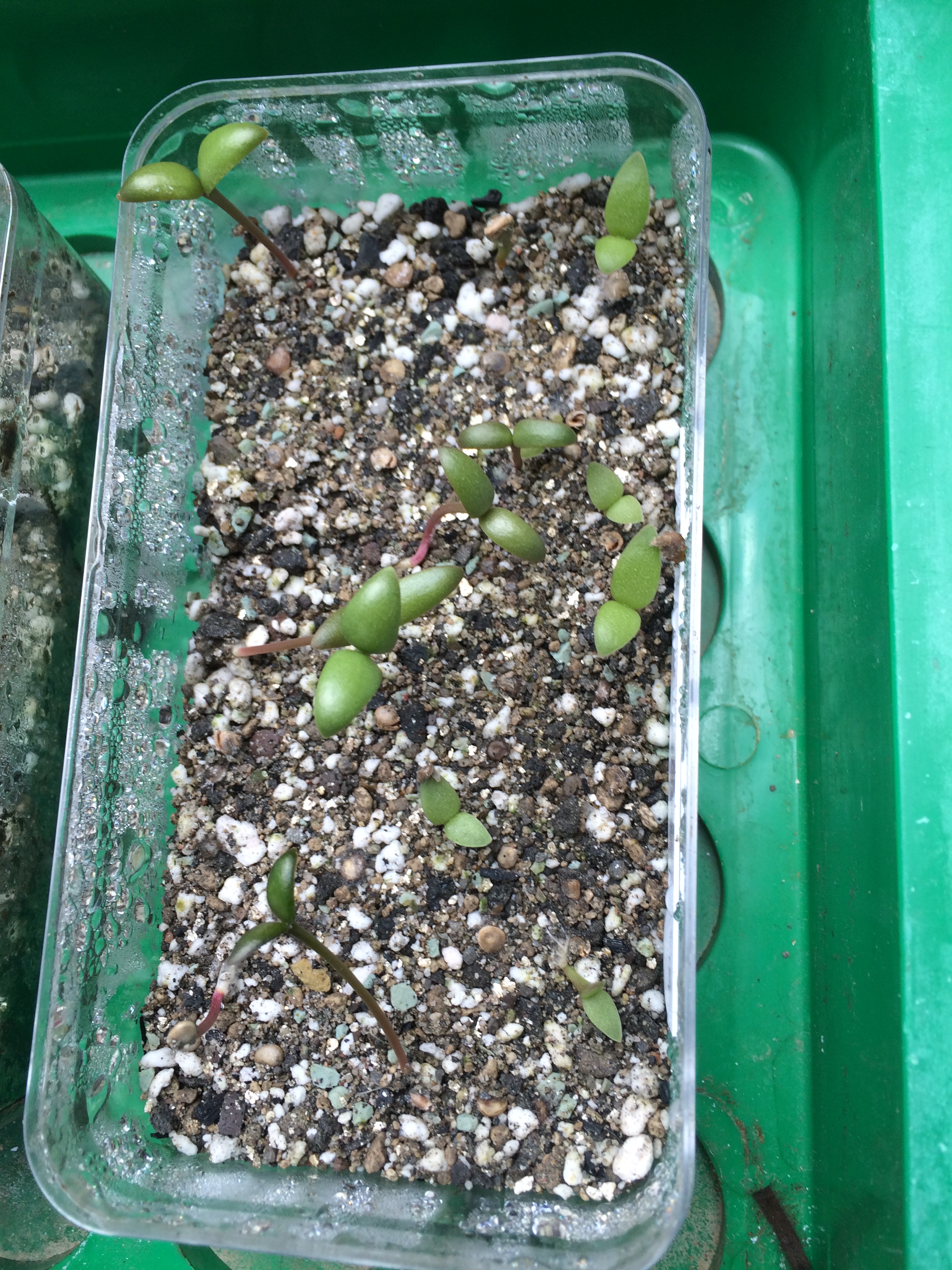 Der neue Opuntienmix in meinem beheizten Zimmergewächshaus in den Rochè Pötten ist gut am austreiben....nur wieder so auf einm Stängel mit zwei Keimblätter..... hat mal einer einen Tipp ob...bzw wie man das verhindern kann.