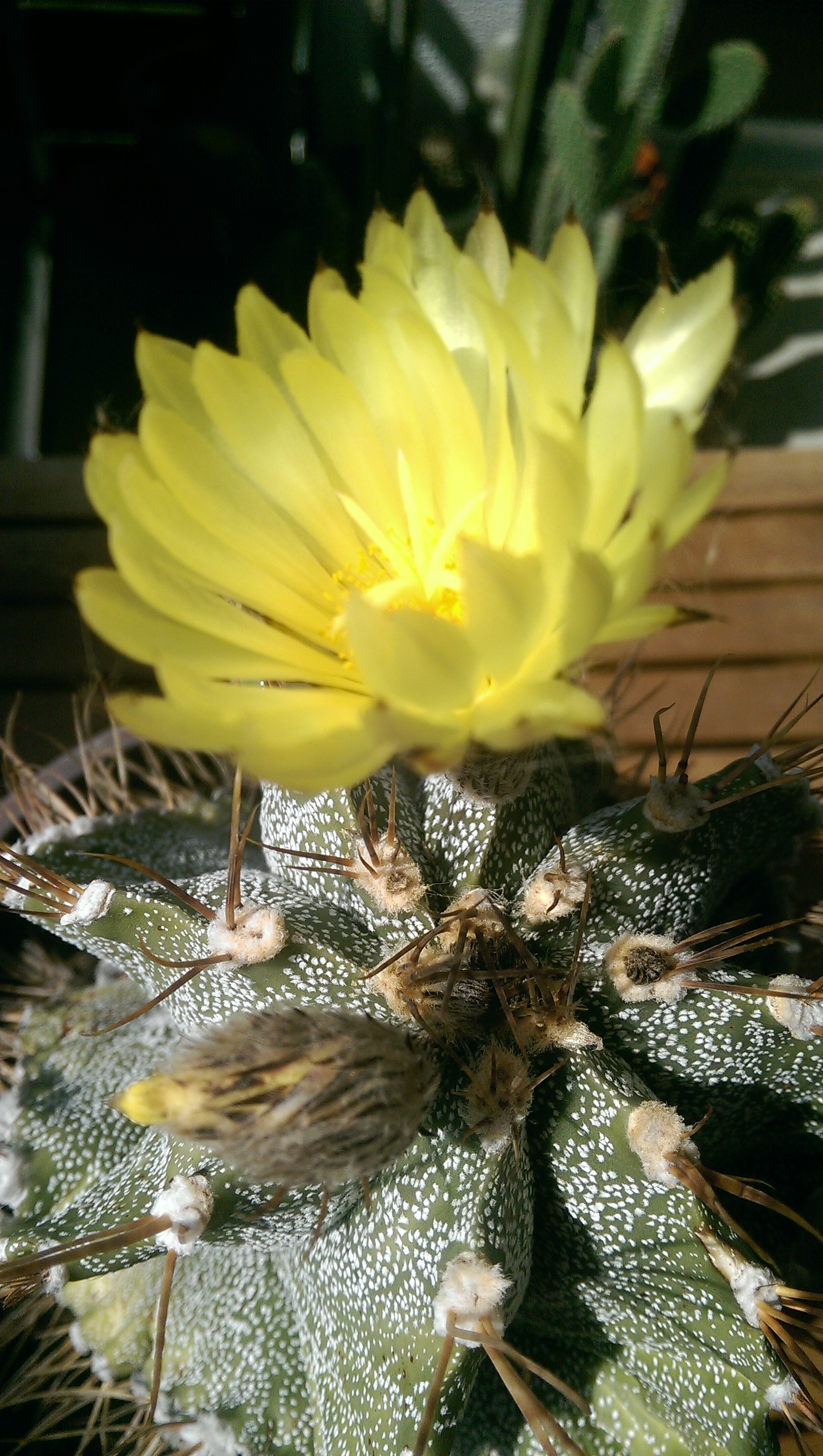 Ich suche mir daher meine Kakteen grundsätzlich nach der Optik der Pflanze aus, nicht nach der Optik der Blüte. Die Blüte kommt ja oft (wenn überhaupt) nur einmal im Frühsommer, und das bei vielen Arten nur für einige wenige Tage. Daher ist es mir wichtig, daß mir die "nicht-blühende" Pflanze gefällt. Wenn die Blüte dann kommt, schön, wenn nicht (oder sie wegen Regen, etc. nicht vorzeigbar ist), ist es auch OK. "Sahnehäubchen" eben.