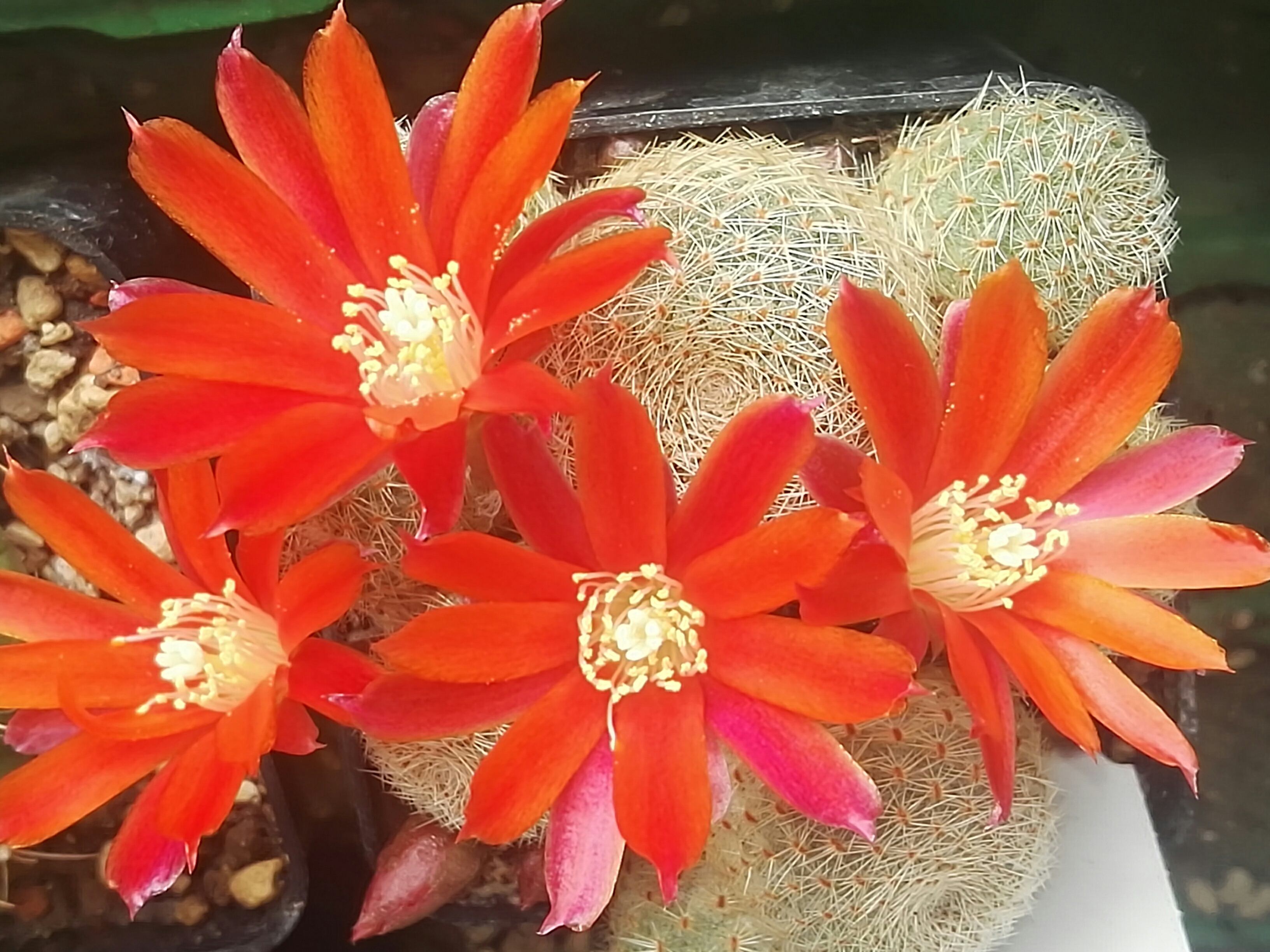Bei mir blühen gerade Mammillaria backebergiana und Mammillaria hutchisoniana