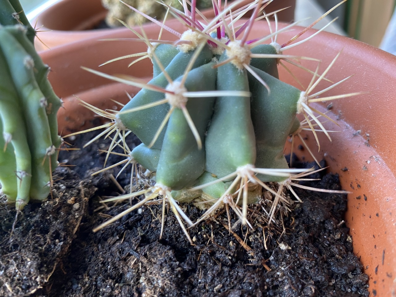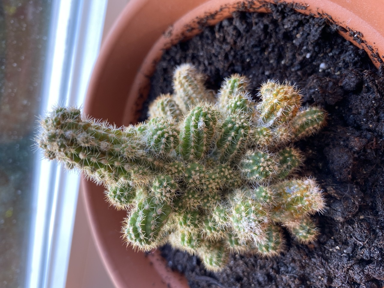 Uns ist heute aufgefallen, dass alle unsere Kakteen gelbe Flecken bekommen. Es scheint unten am Stamm loszugehen, bei dem kleinen mit den vielen Trieben sind ebenfalls die Spitzen betroffen. Da alle auf der Fensterbank nebeneinander stehen und alle betroffen sind, wird es sich wohl um einen Schädling oder ansteckende Krankheit handeln oder?