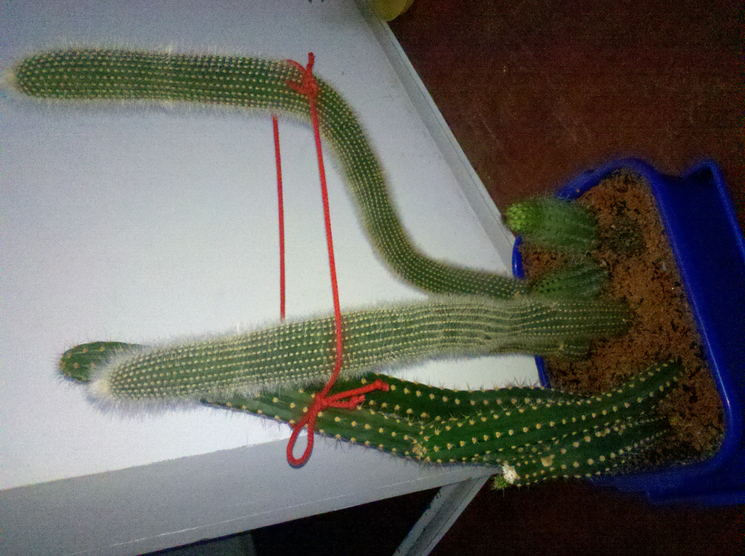 [attachment=0]2015-10-20_07-53-29_507.jpg[/attachment]... diese Kakteen gedeihen gut und werden immer länger und drohen zu brechen oder zu kippen - ganz links ist einer gebrochen, man sieht die weisse Bruchfläche an der sich schon eine "Tochter" bildet - das abgebrochene Stück scheint gut angewachsen.