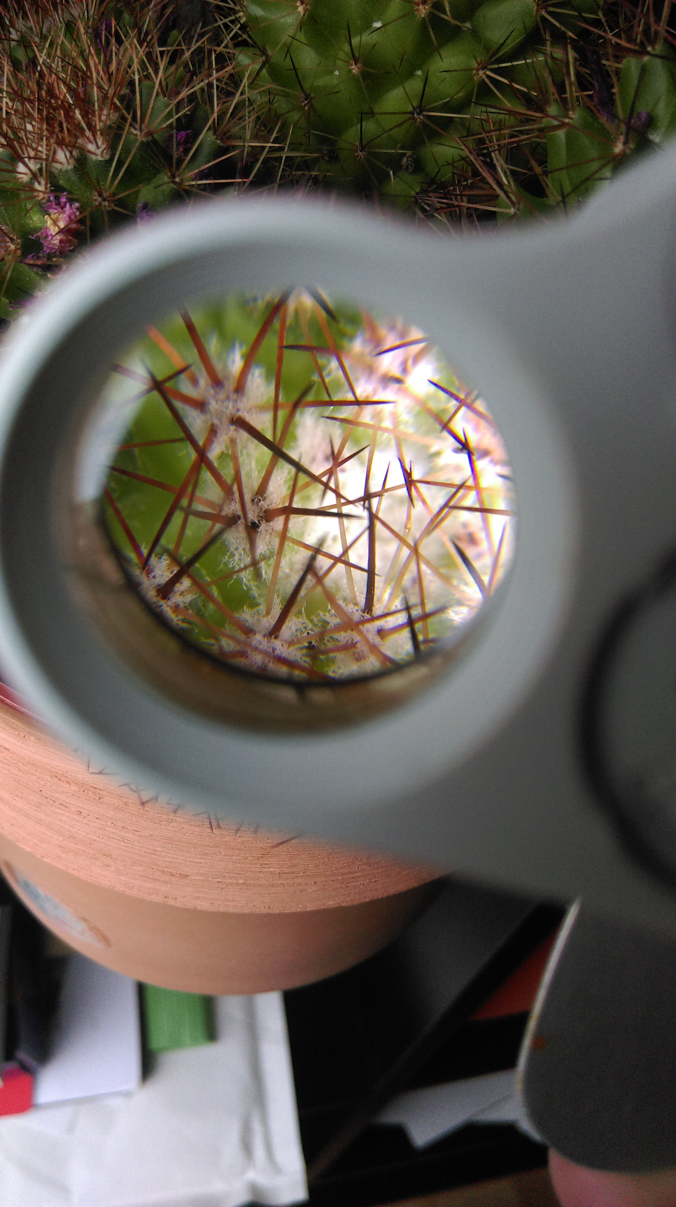Ein leider ungrüner Daumen will wissen: Was fehlt dem folgenden Kaktus ? Dachte zu erst an Schimmel, meine dafür ist der fremdartige weisse Bereich aber zu strukturiert. Bei den Wollläusen aus dem Beispielfred wäre ich mir leider nicht sicher.