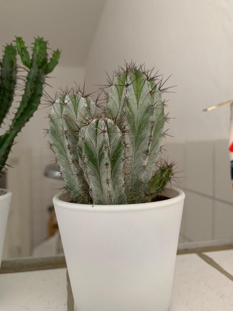 Mein Kaktus hatte bereits im Baumarkt eine gräuliche Schicht, siehe Foto. Ich wollte mich mal erkundigen ob das einfach die Art des Kaktus ist oder ich mir Gedanken machen sollte.