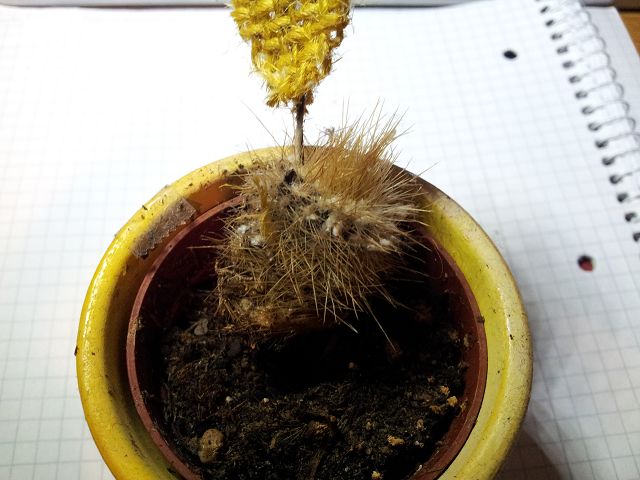 Weiterhin geht meine Austrocylindropuntia vestita geht die seit geraumer Zeit immer mehr kaputt. Die langen grünen Stängel, die bisher nach oben ragten haben sich geneigt und hängen jetzt über den Blumentopfrand Richtung Boden.