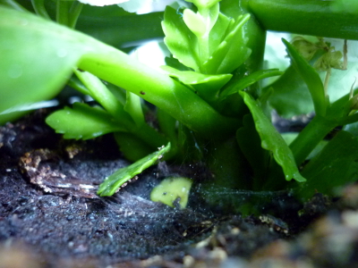 Meine beiden Kalanchoe sehen einfach nur schrecklich aus, sie haben gelbe Blattspitzen, die unteren Blätter welken (hab schon viele abgemacht) und auf manchen Blättern sind eigenartige Auswüchse (siehe Foto) und das schlimmste: Sie scheinen von unten abzufaulen. Der Stamm ist unten total schwarz und jetzt bildet sich scheinbar auch noch so eine Art weißer Schimmel (siehe Bilder). Das Schadbild ist bei beiden Pflanzen das gleiche. Nur: Auf der einen Pflanze sitzen sehr viele Blattläuse, auf der anderen nicht. Dafür konnte ich aber bei der zweiten vor allem knapp über dem Boden Spinnweben erkennen, die aber anders aussehen, als die von Spinnmilben. Bei meiner dritten Kalanchoe sehen nur die Blüten langsam aus, als ob sie am Abblühen wären, aber auch da habe ich jetzt mit Schrecken solche Spinnweben gesehen (Foto: mit Wasser besprüht, damit man sie besser sehen kann). Die Spinnweben sind aber wieder nur am Boden. Ich habe sie jetzt mit einem Wasserstrahl abgespritzt und auch mit einer Seifenlauge (wegen der Blattläuse) behandelt, aber dieses "Abfaulen" wird immer schlimmer. Was kann hier die Ursache sein und was kann ich tun?