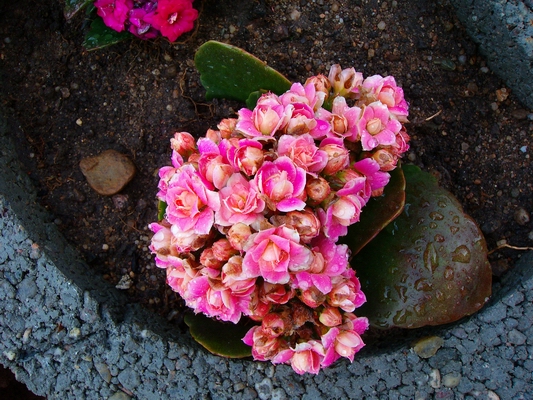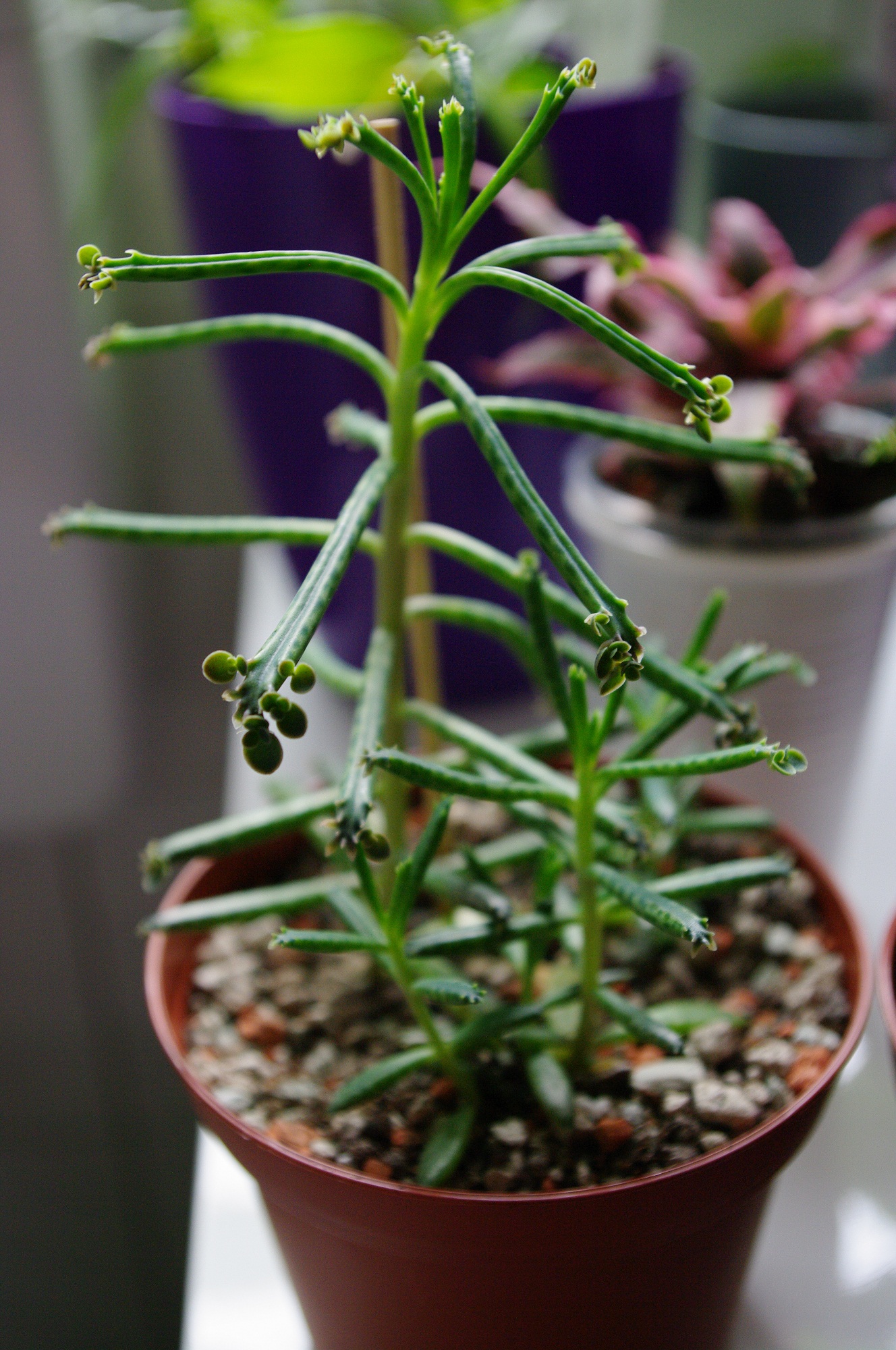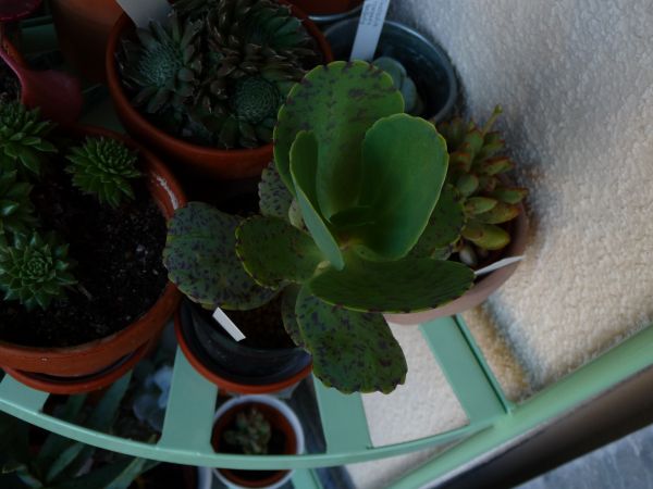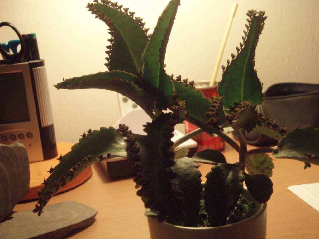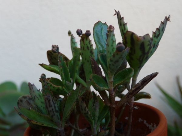 Jeder hat mir nahegelegt, den Stengel nach dem Abblühen der Blüten abzuschneiden, damit die Pflanze nochmal neu austreibt - frisch und fröhlich. Als ich aber bemerkt hab, dass die Pflanze Kindel bildet, wurde ich neugierig. Deshalb lass ich den Stengel noch dran. Das Interessante ist, dass die Kindel im oberen Bereich munter weiter wachsen, während die Kindel an den Blättern (bei mir jedenfalls) zu wachsen aufhören, wenn sie eine bestimmte Größe erreicht haben.