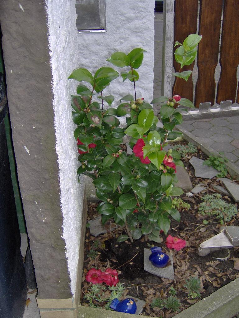 Bin jetzt stolze Besitzerin von 2 Kamelien. Sie sind der Begin meiner Vorgarten-Umgestaltung! und heute mit dem ersten Schnee hat sie auch die ersten Knospen!!!