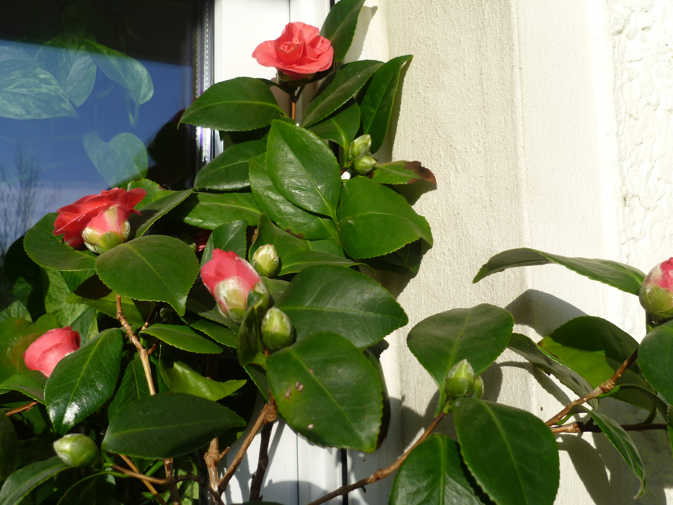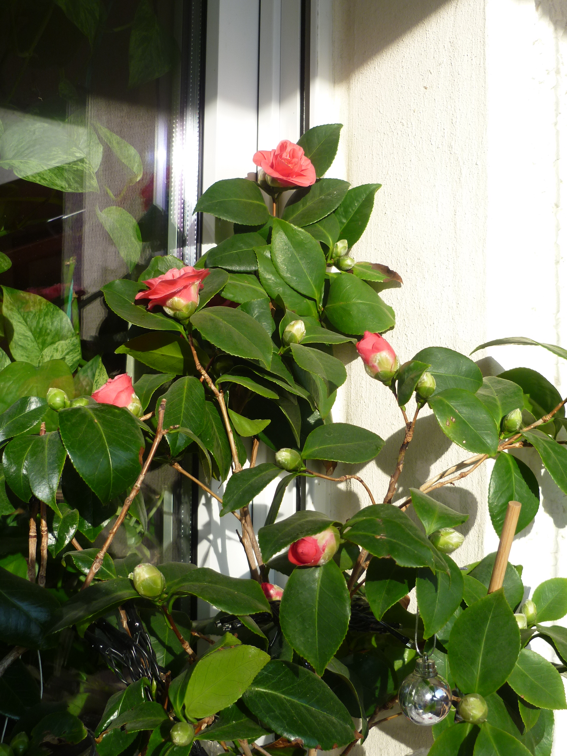 auch wenn es einige Tage her ist, meine Kamelien von 2012 blühen wieder. Zumindest die Rote.