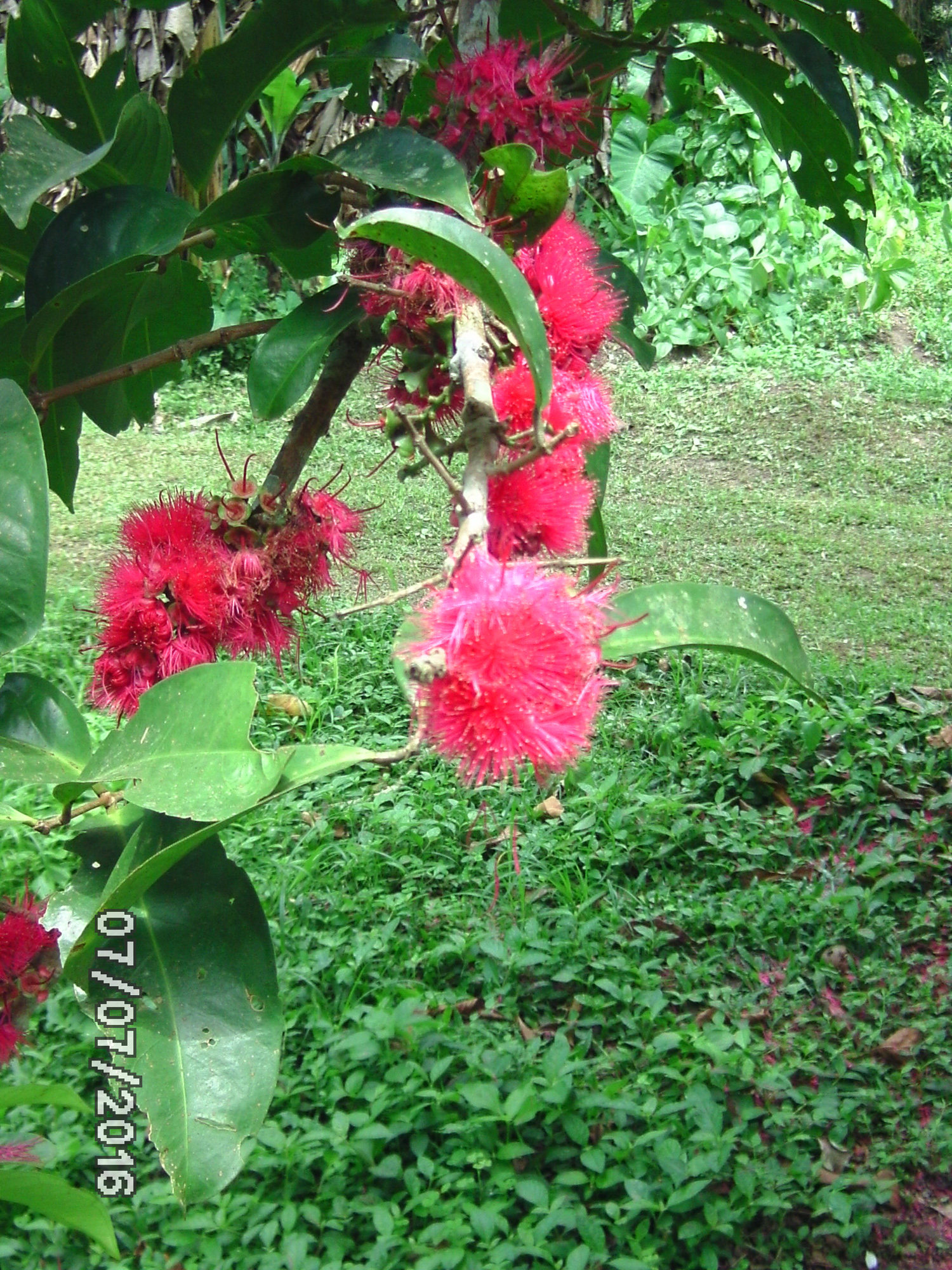 Unsicher war ich mir bei der Bestimmung des "Wasserapfels" (Syzygium malaccense) . Daher füge ich auch davon Fotos bei mit der Bitte mich ggf. zu korrigieren.