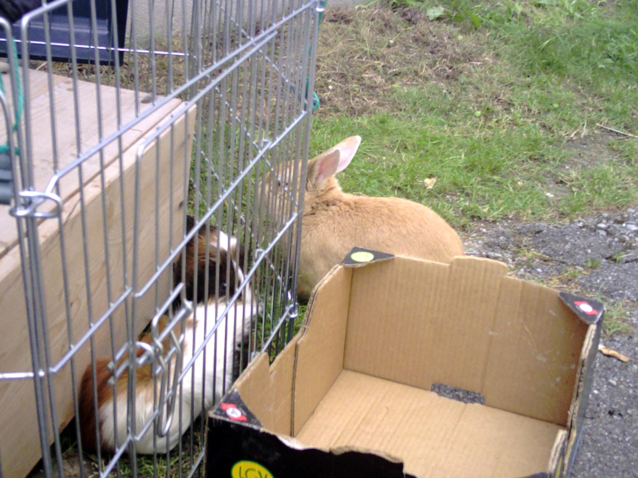 wollte meiner schwester zeigen, wie mama und papa kaninchen sich lieb haben können. hat gleich beim ersten versuch geklappt. fotos hab ich leider grade keine:(