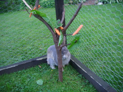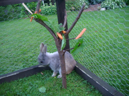 Ich habe 2 Kaninchen, einen Löwenwidder und eine Pekingteddywidderdame. Der Löwenwidder hört auf den Namen Turbo und ist total zahm. Er läuft gerne im Garten rum und hoppelt immer in die frisch gegrabenen Löcher, wenn wieder einmal Gartenarbeit ansteht. Er ist eigentlich immer im Weg, was aber total niedlich ist. Die Dame ist eine echte Zicke und hört auf den Namen Teddy. Sie ist total verfressen, kann aber auch Streicheleinheiten vorziehen. Wenn man es so will, ist sie eigentlich launisch, aber trotzdem süß. Die Beiden hatten zusammen schon zwei Würfe.