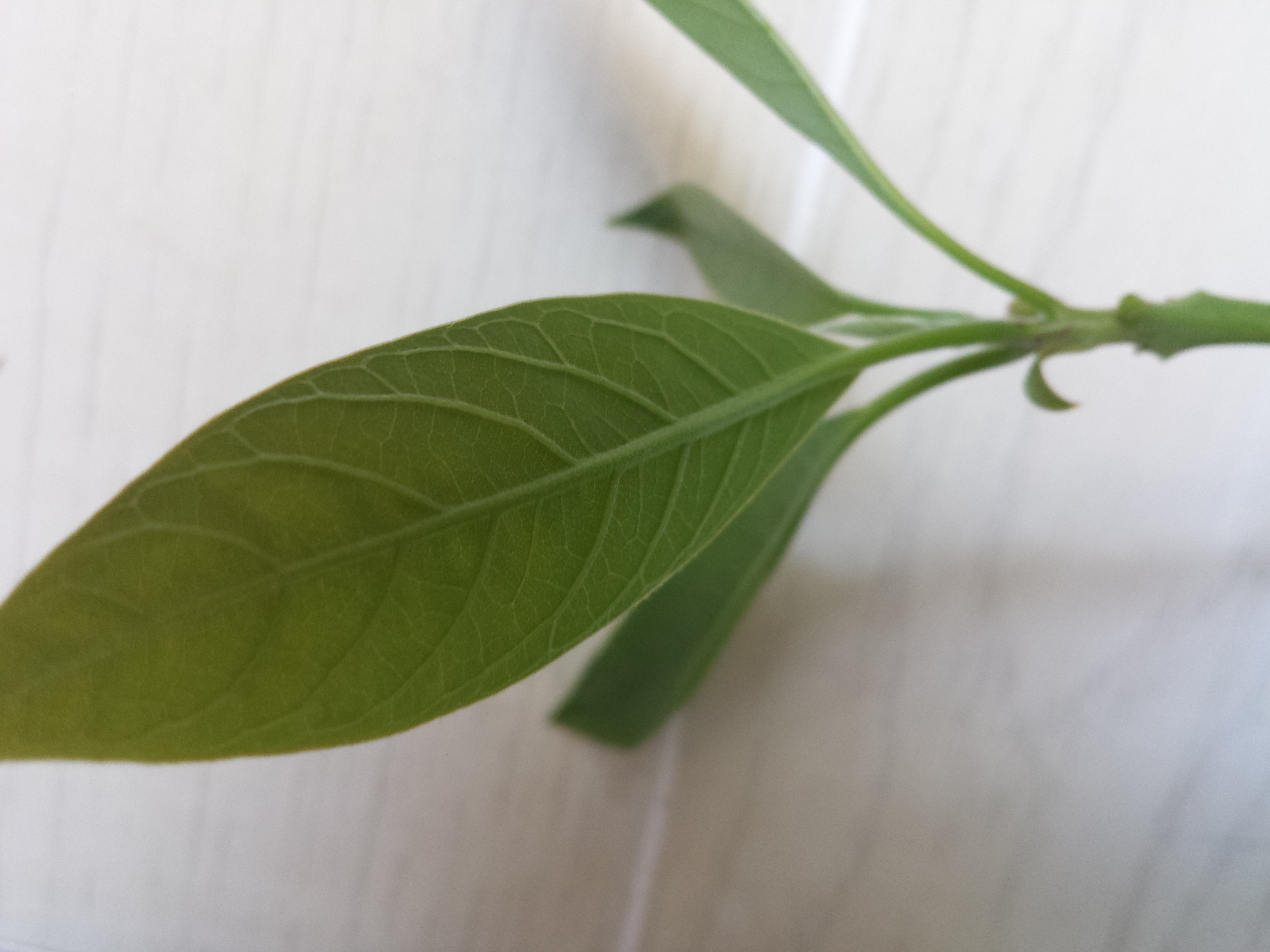 Ich hatte schon mal die Frage, was es für eine Pflanze ist. Die Antwort war: wahrscheinlich eine Wollmispel. Heute hat mir meine Vermieterin gesagt, es wäre eine Avocado. Hat die auch an den jungen Blättern an der Unterseite so kleine, weiße Härchen?