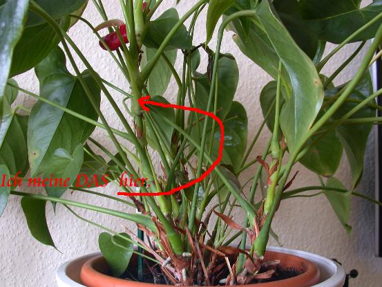 ich habe eine Anthurie (2 in EINEM Topf). Die Triebe von denen die Blätter abgehen werden immer länger. Sie sind mittlerweile etwa 20 cm. lang. Kann ich die unten abschneiden damit sie von unten heraus wieder etwas voller werden? Oder muss das einfach so sein?[attachment=1]DSCN0933.JPG[/attachment][attachment=0]DSCN0934.JPG[/attachment]