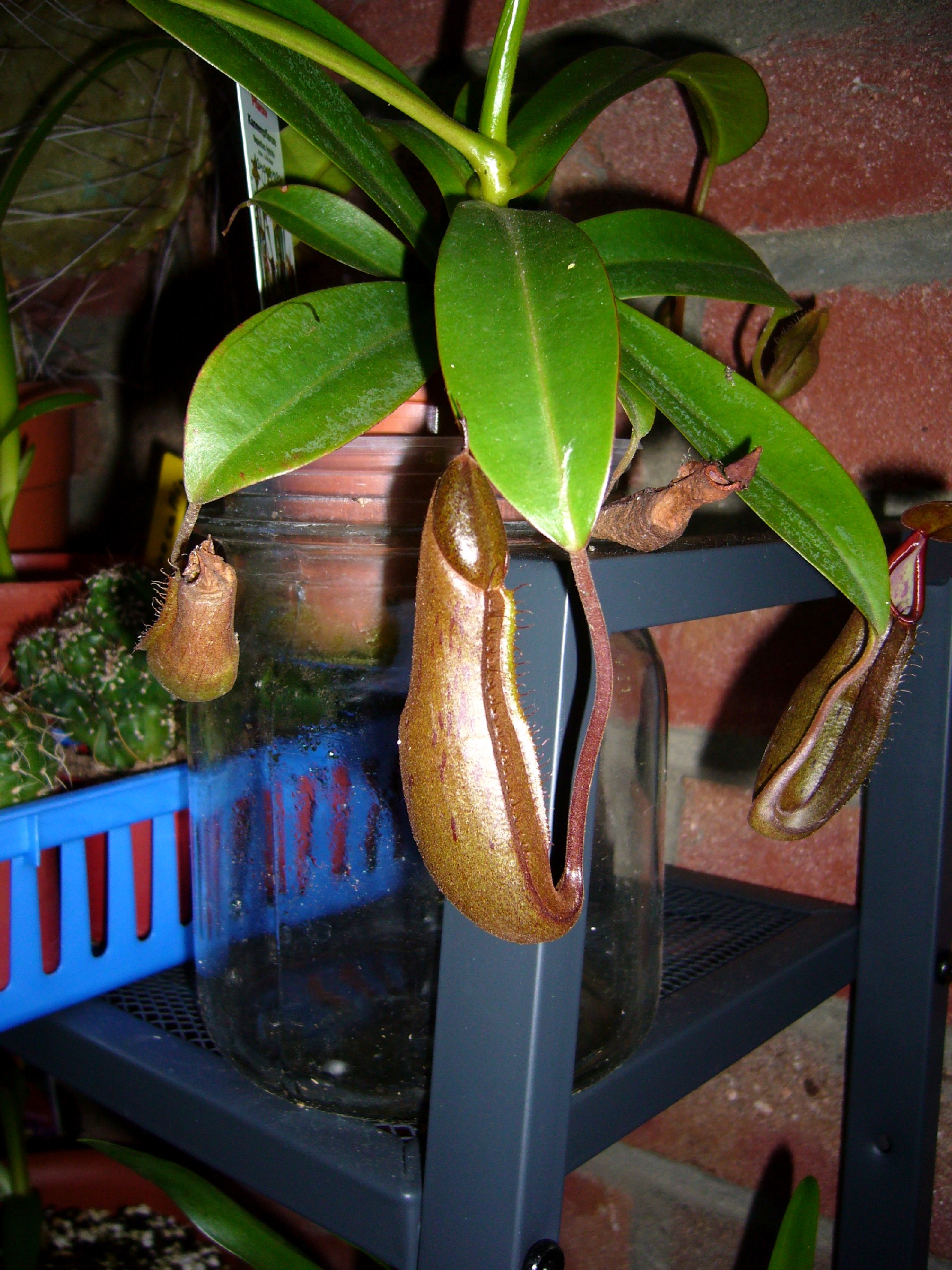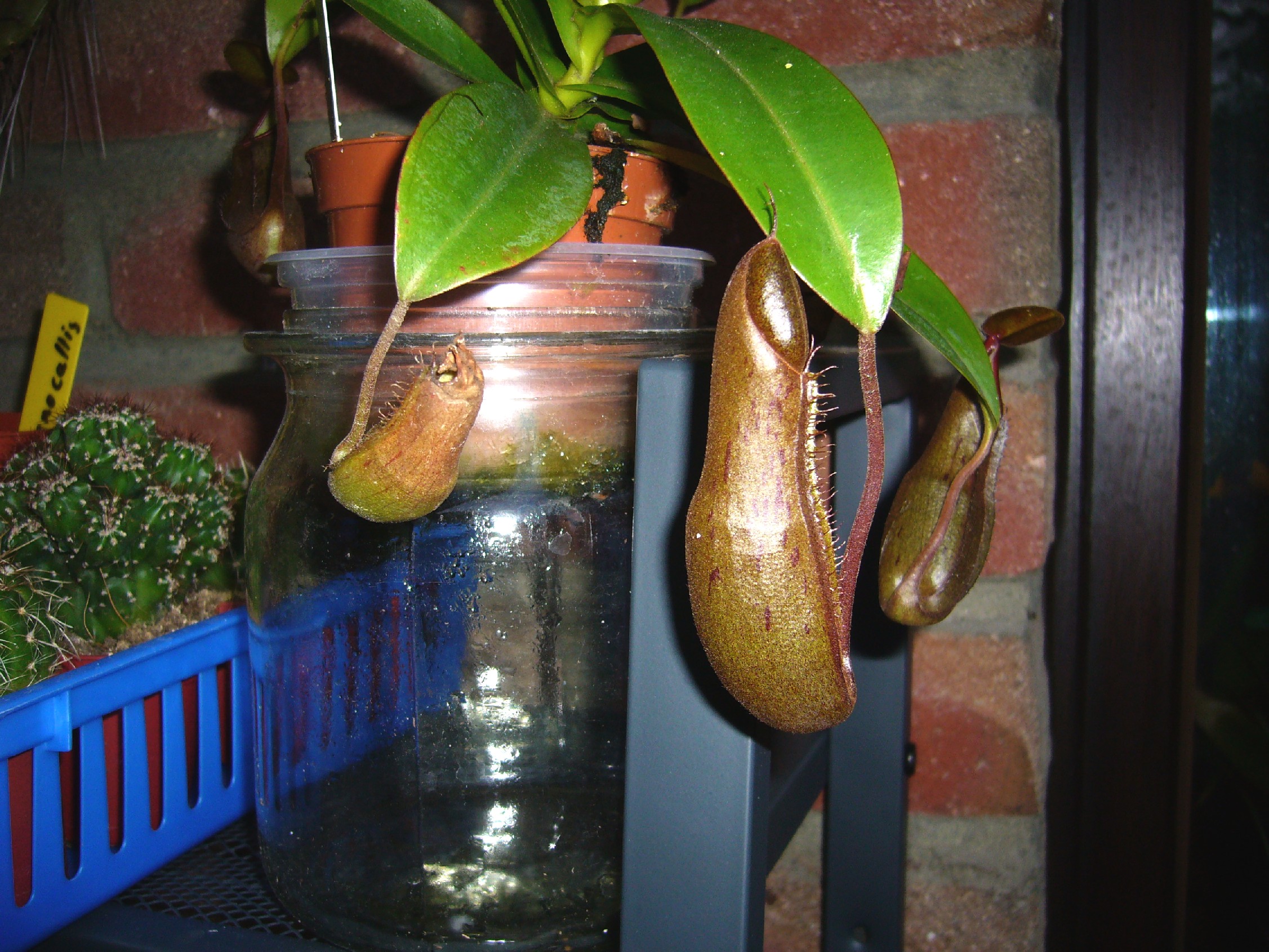 habe zwei Kannenpflanzen- im Moment stehen sie in "Rosentöpfen" mit einem Loch unten im Boden und auf einem Untersetzer. (Rosentöpfe waren die einzigen, die mir hoch genug erschienen...')