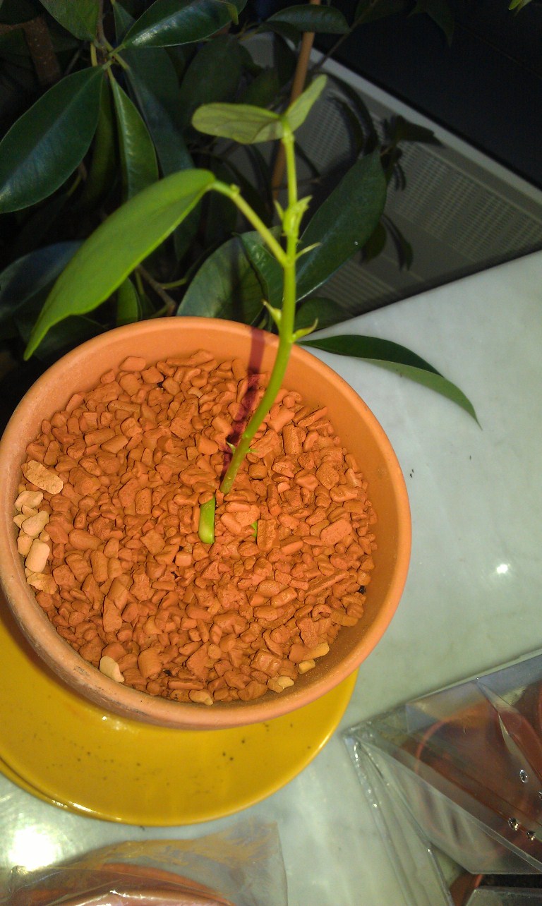 Nun haben sich allen ernstes Wurzeln gebildet und der andere Teil bekam seine ersten Blätter *freu* Das ist ja fast wie Weihnachten )