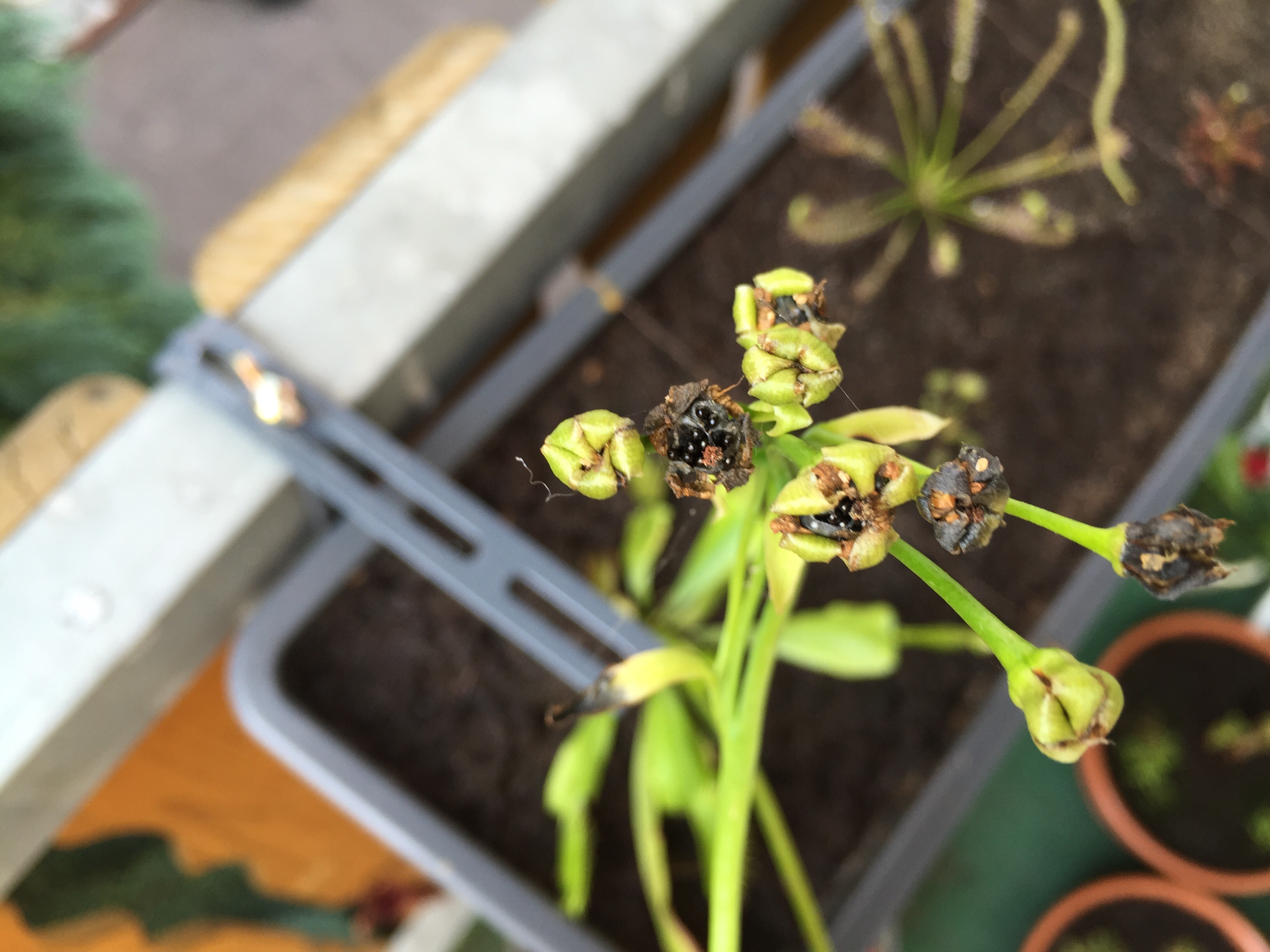 D. capensis treibt nun nach der Blüte neu aus und an ihrem Platz oberhalb sind viele Samen, etwas zu viele Aber da schau ich dann mal, wenn die größer sind. Die nächsten Blüten werden auf jeden Fall dann abgeschnitten, einmal reicht