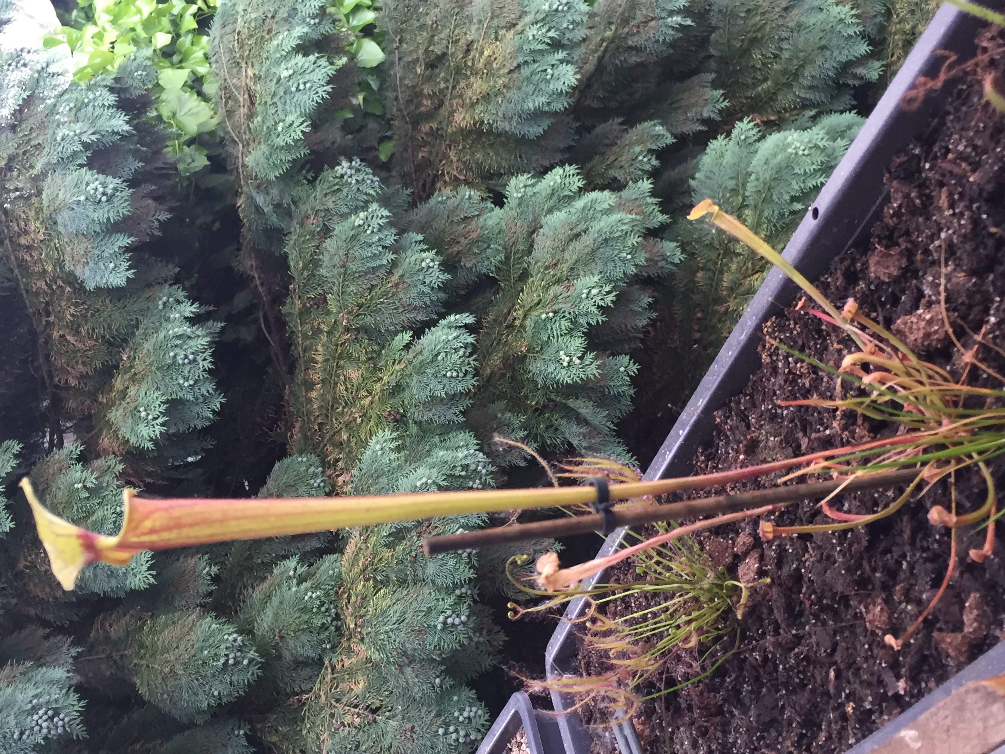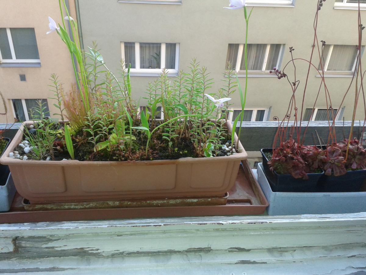 Frage: Wie gut gefällt dir das Glas? Der Punkt ist, dass die drei Pflanzen eigentlich, von ihren Ansprüchen her, nicht zusammen passen. Die Drosera stammen aus Südafrika und wollen es im Winter etwas kühler, aber nicht wirklich kalt (Südafrika-Winter). Die Sarracenia sieht stark nach S.purpurea (Hybride?) aus, die mit Abstand Kältetoleranteste Sarra, die in Regionen mit richtig kalten Wintern wächst (bis Kanada, verwildert auch in Nordeuropa). In einem ausreichend grossen Topf könnte die also sogar draussen bleiben.