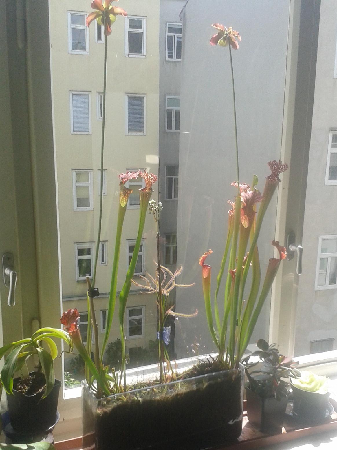 Bis auf die tropischen Gattungen (Nepenthes, Heliamphora, tropische Drosera) sind Karnivoren im Grunde nicht geeignet permanent drinnen gehalten zu werden, es sei denn, man beleuchtet ganzjährig entsprechend.
