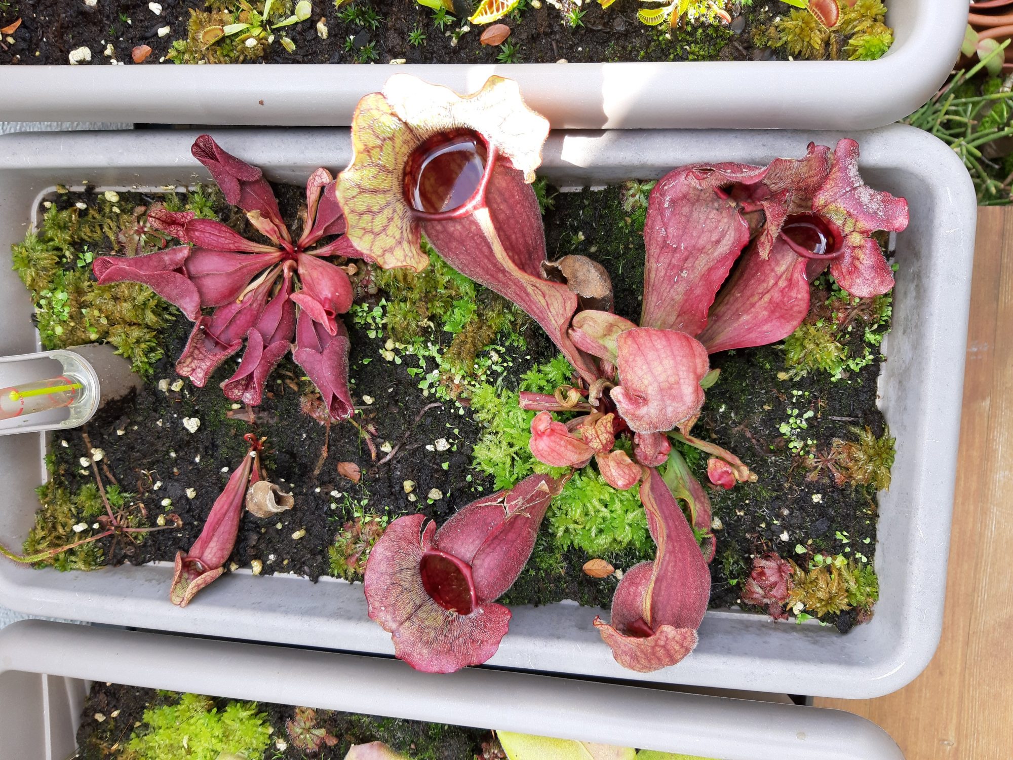 der hat es hier irgendwie nicht gefallen. Dafür sind mir heimlich zwei neue Sonnentau in den Einkaufswagen gehüpft, als ich die Woche beim Rosenerde kaufen mal eben nicht hingeschaut hab