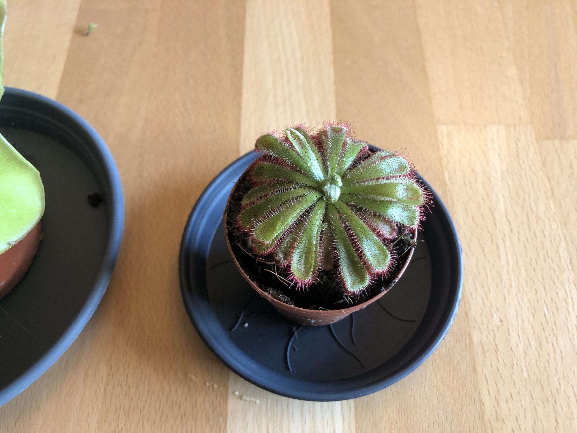 der hat es hier irgendwie nicht gefallen. Dafür sind mir heimlich zwei neue Sonnentau in den Einkaufswagen gehüpft, als ich die Woche beim Rosenerde kaufen mal eben nicht hingeschaut hab