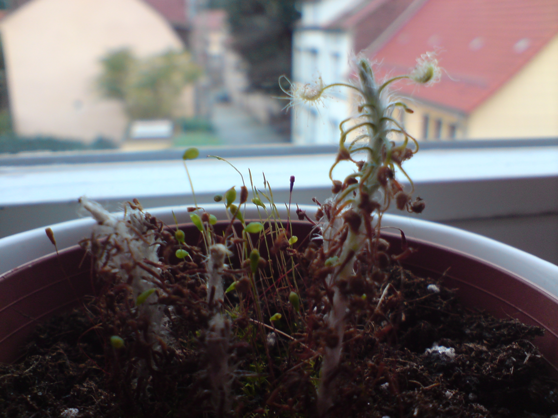 Also der D.scorpioides war, wie schon gesagt, schon recht vefallen beim Kauf. Die Stämmchen sind ja von so weißen Härchen überwuchert. Daraus kommen ja dann die Fallen- immer zu dritt- auf einer Ebene heraus. Von solchen Stämmchen hab ich 6, bei 5 davon sind alle Fallen braun.
