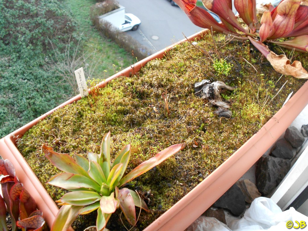 Bei mir öffnen sich auch schon die Hibernakel der Drosera und die Venusfliegenfallen haben ihre ersten neuen Blätter gebildet. Leider habe ich die Sämlinge der grünen Form verloren. Dort ist, ebenso wie bei einigen meiner Pinguicula ein größeres Loch im Torf. Ich vermute Vogelfraß. Die restlichen Pinguicula treiben aus. Die Sumpfprimel blüht bereits, die Moornelken haben, so wie bei Dir, Neuaustriebe. Eine hat sich geteilt, ist aber jeweils nur mehr die Hälfte von vorher. Das leidige Moos vermehrte sich auch. Leider. Das Gras hab ich nach dem einzigen tiefen Frost des Jahres beschnitten. Neuaustriebe kann ich noch nicht feststellen. Von Blüten natürlich auch keine Spur Die Sarracenien habe ich diesmal, bis auf die S. minor (für die ich noch keinen Platz gefunden habe) in meinen Möörchen überwintert. Momentan regnet und windet es, sobald das Wetter wieder besser ist, mach ich mal Fotos.