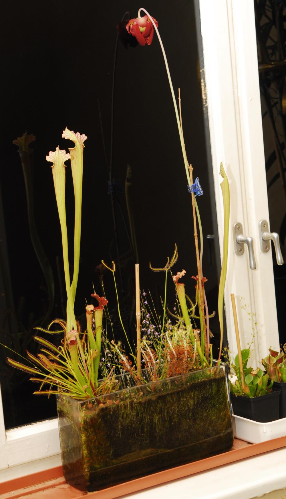 Tip: Ich hab die meisten Pflanzen mit ihrem Topf im Terrarien-Substrat versenkt. Das hat den Vorteil, ohne viel Aufwand mal einen oder mehrere Pflanzen schnell rauszunehmen. Das macht die Pflege zB bei Schädlingsbefall oder weil eine Pflanze fürs Terrarium viel zu groß geworden ist, um vieles einfacher. Auch kann das Terrarium mit wenigen Handgriffen mal umgestaltet werden. Und nicht zuletzt gestaltet sich die Eingewöhnung der Pflanzen viel problemloser.