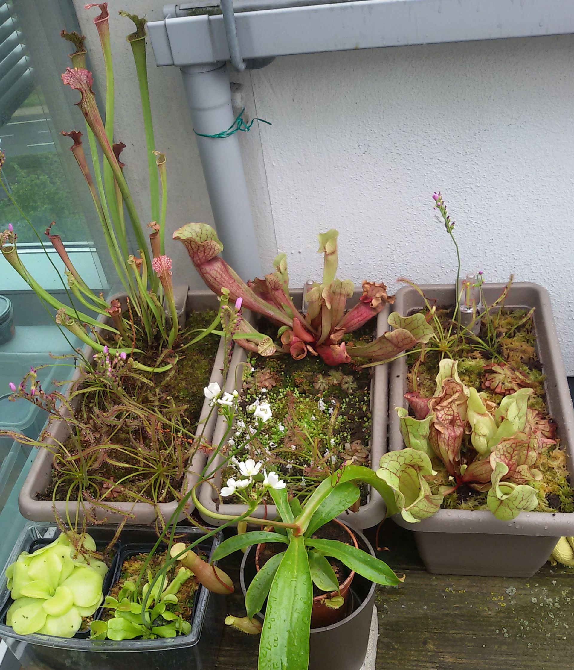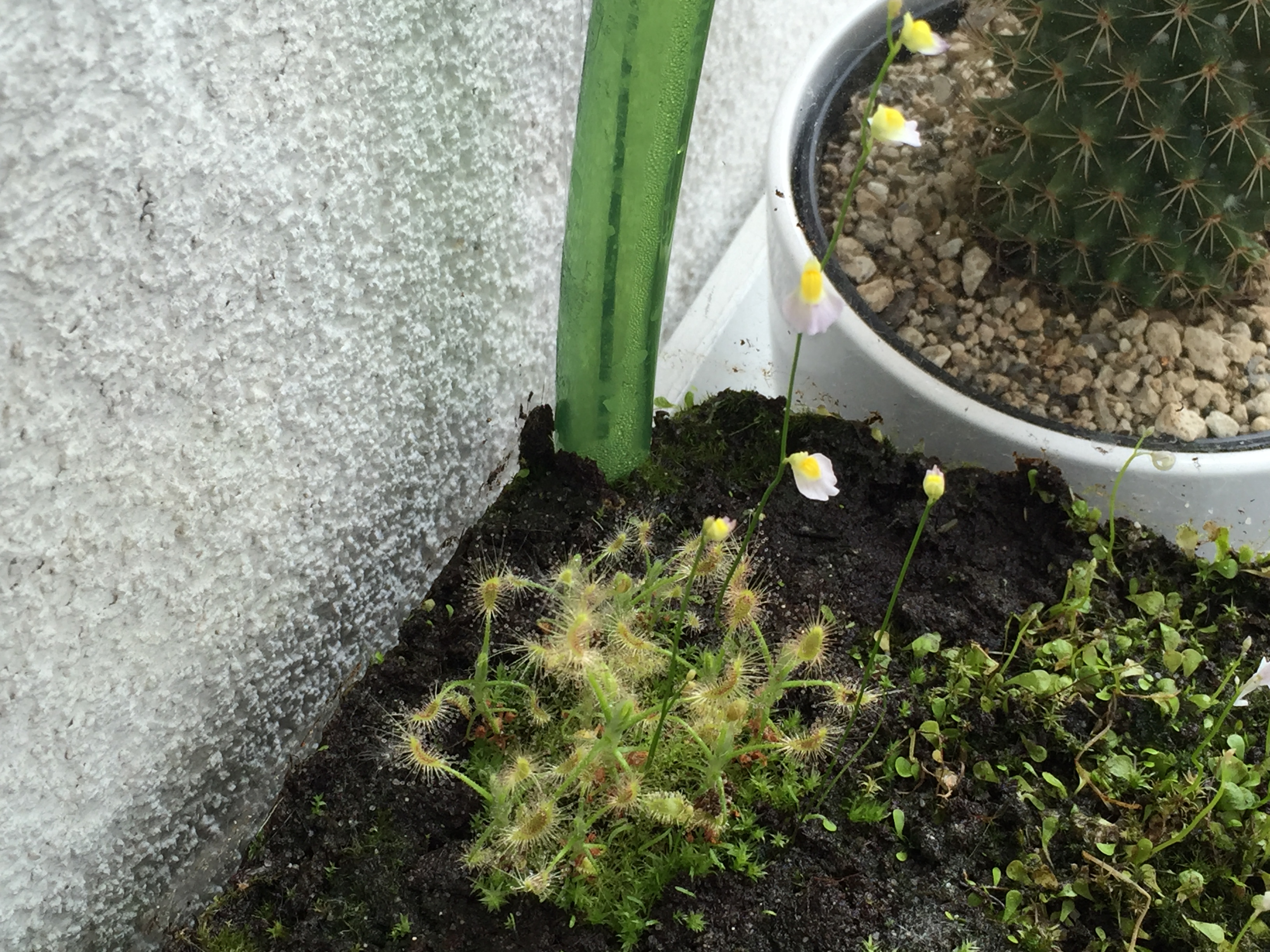 Frage: Wie gut gefällt dir das Glas? Der Punkt ist, dass die drei Pflanzen eigentlich, von ihren Ansprüchen her, nicht zusammen passen. Die Drosera stammen aus Südafrika und wollen es im Winter etwas kühler, aber nicht wirklich kalt (Südafrika-Winter). Die Sarracenia sieht stark nach S.purpurea (Hybride?) aus, die mit Abstand Kältetoleranteste Sarra, die in Regionen mit richtig kalten Wintern wächst (bis Kanada, verwildert auch in Nordeuropa). In einem ausreichend grossen Topf könnte die also sogar draussen bleiben.