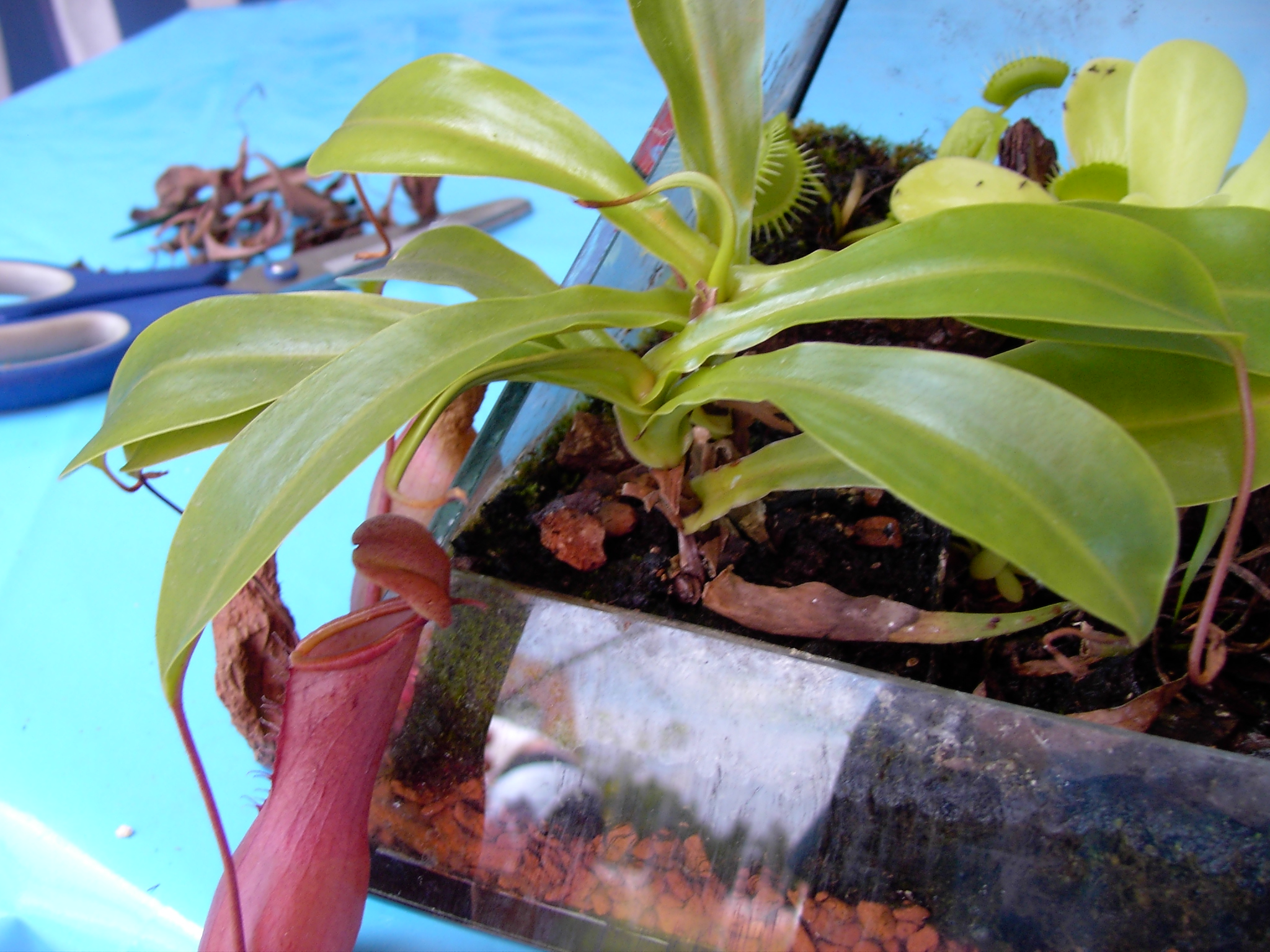 Die Sarracenia und die Nepenthes dürfen auf keinen Fall mehr da rein. Das Substrat ist nicht tief genug für die Wurzeln der beiden und daher gibt es Dauerstaunässe.