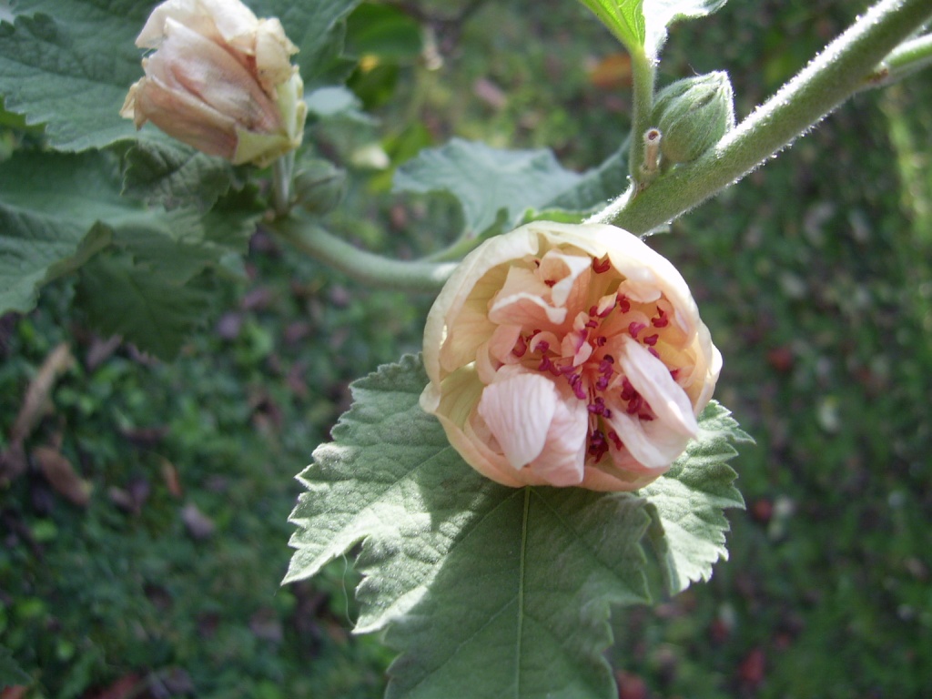 Im Frühjahr bekam ich einen Wurzelstock einer angeblich seltenen Malve geschenkt. Lange war unklar, ob sie überhaupt anwächst, es hat aber geklappt, und nun blüht sie .