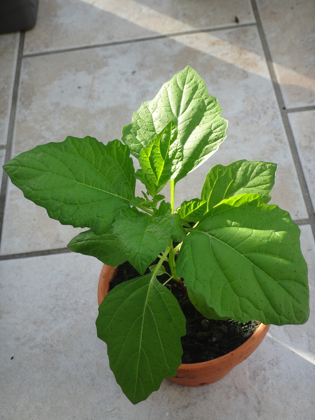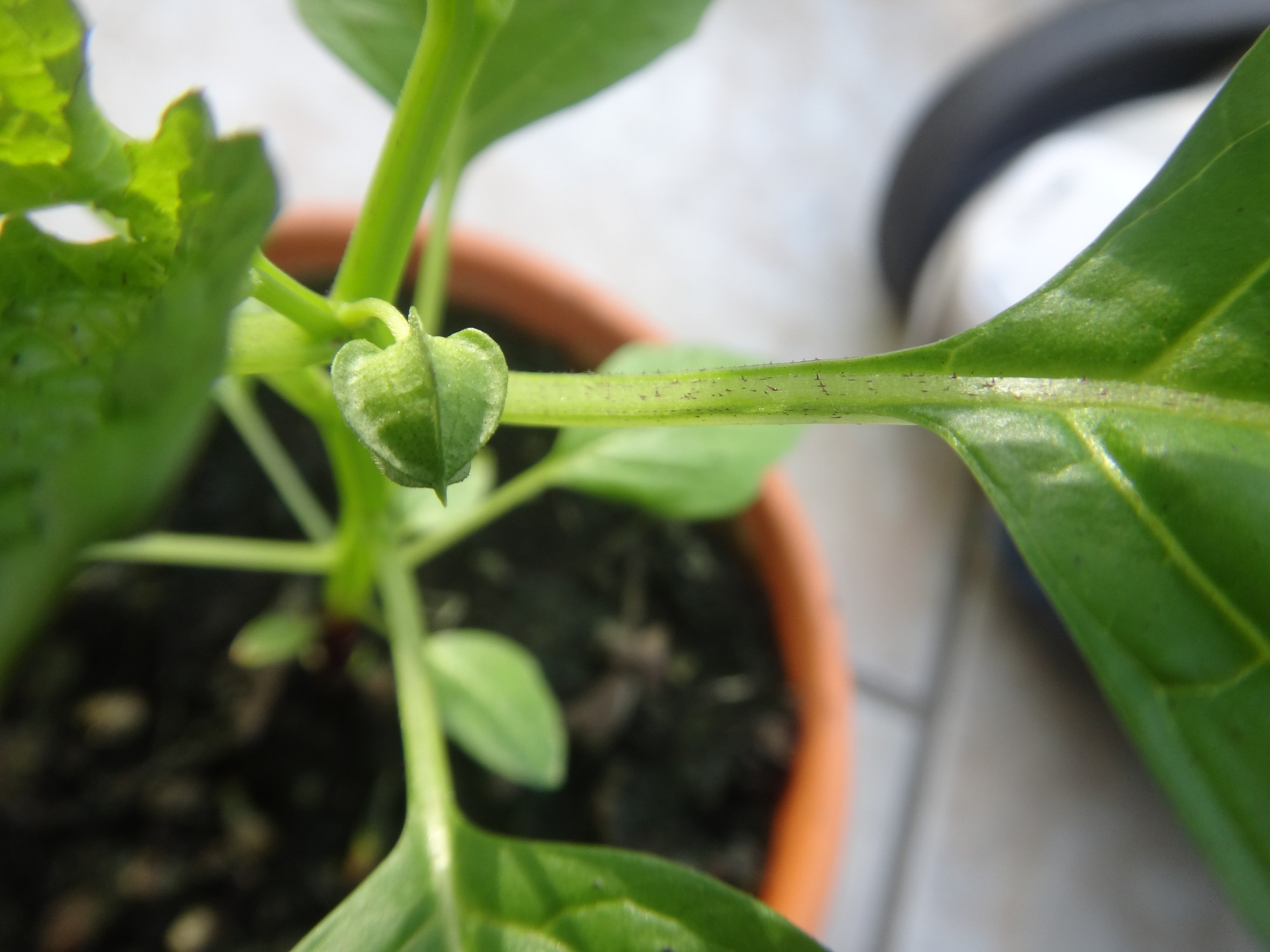 Die "Unbekannte" ist mittlerweile ca. 20-25cm groß und hat dafür - wie ich finde - stattliche Blätter. Bereits auf den ersten Blättern waren kleine schwarze Stacheln, die sich nun auch weiter geprägt haben. Auf den Fotos hab ich`s mal Versucht einzufangen. Gleichzeitig habe ich beim fotografieren auch noch eine Knospe (?) entdeckt, vielleicht hilft die ja auch.