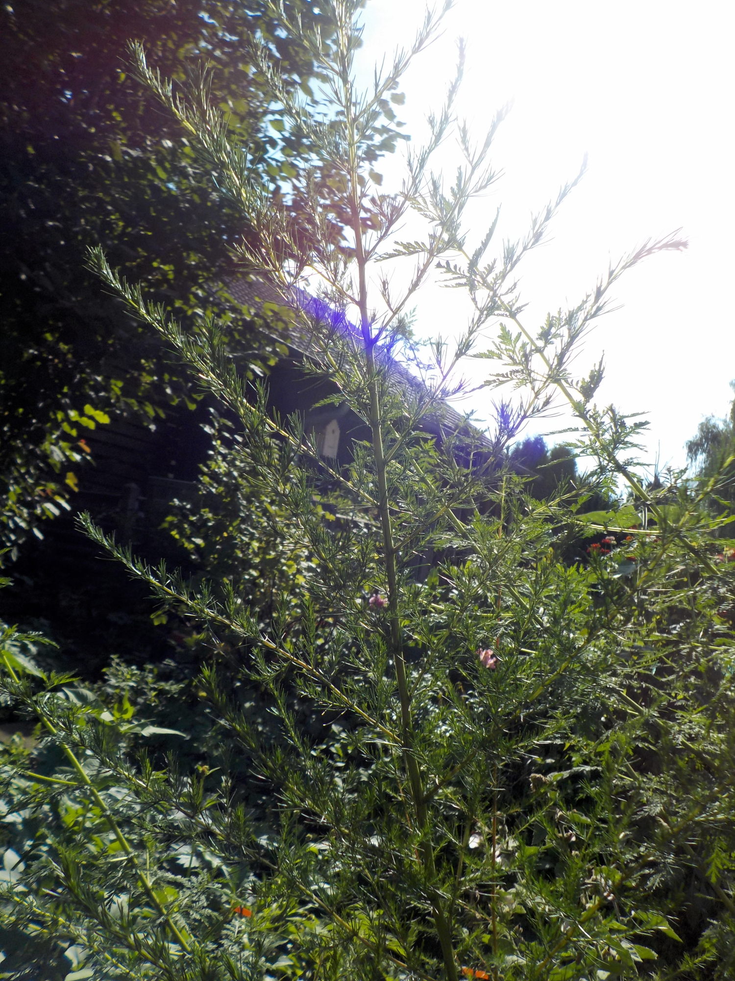 ein Bekannter von mir hat mir diese Bilder geschickt und wir rätseln nun, was für eine Pflanze das ist. Er hatte Saatgut vom Einjährigen Beifuß (Artemisia annua) gekauft, und da war wohl noch etwas anderes mit dabei. Die Pflanze riecht auch ganz anders als Beifuß. Die Bilder sind leider nicht so gut, aber vielleicht hat ja trotzdem jemand eine Idee?