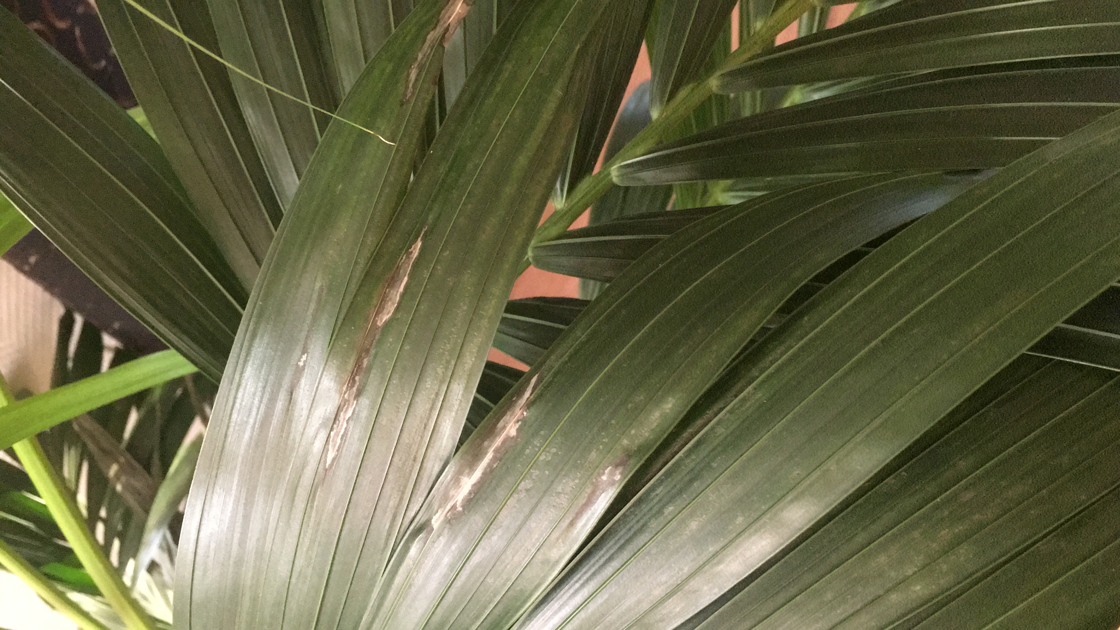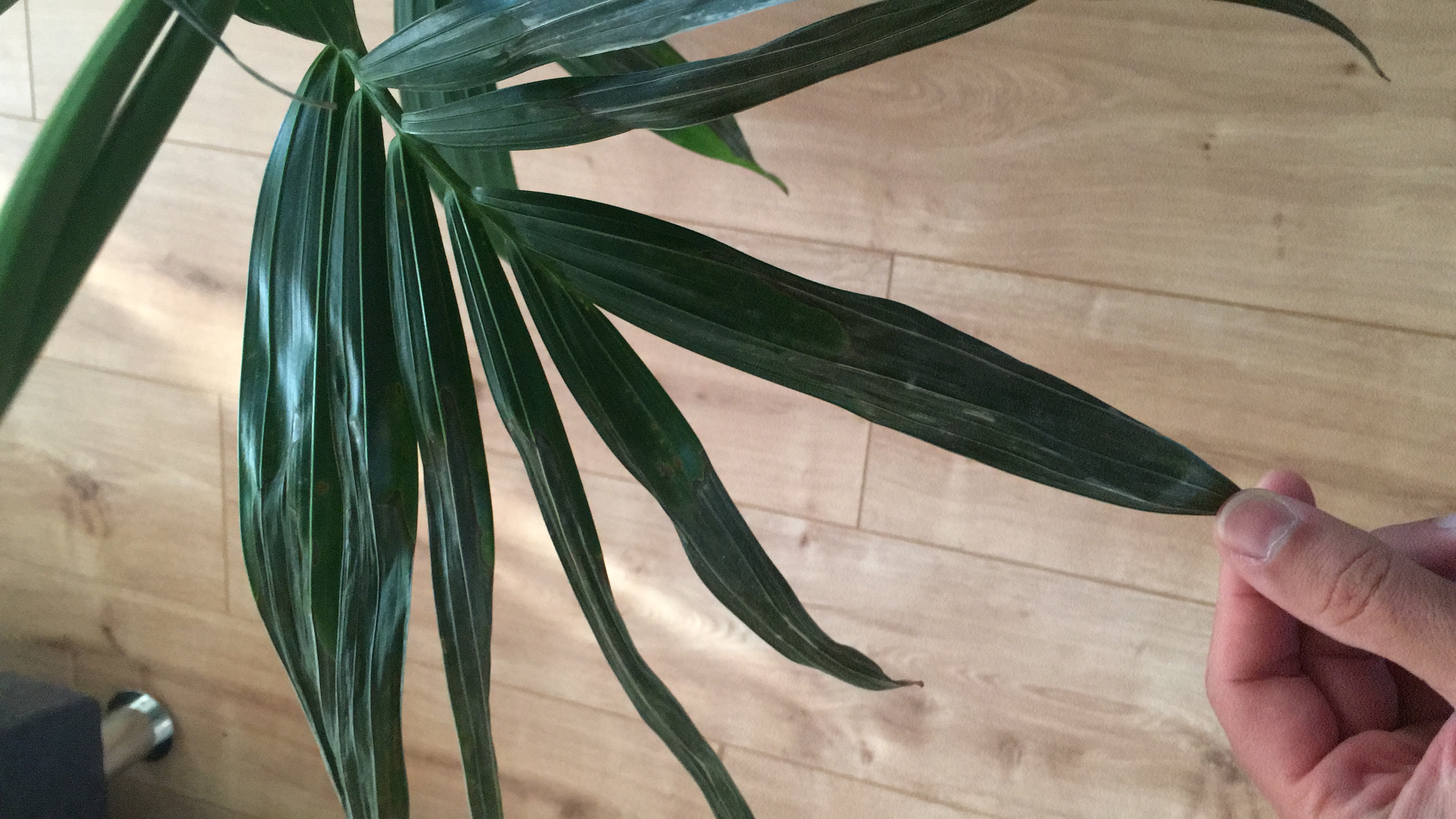 Nach dem Urlaub stellten wir fest, dass so einige Wedel trocken wirkten. Viele braune Blätter oder gar sehr trockene, die man bald schon zerbröseln kann. Die großen Wedel oben sind dabei noch nahezu unversehrt.