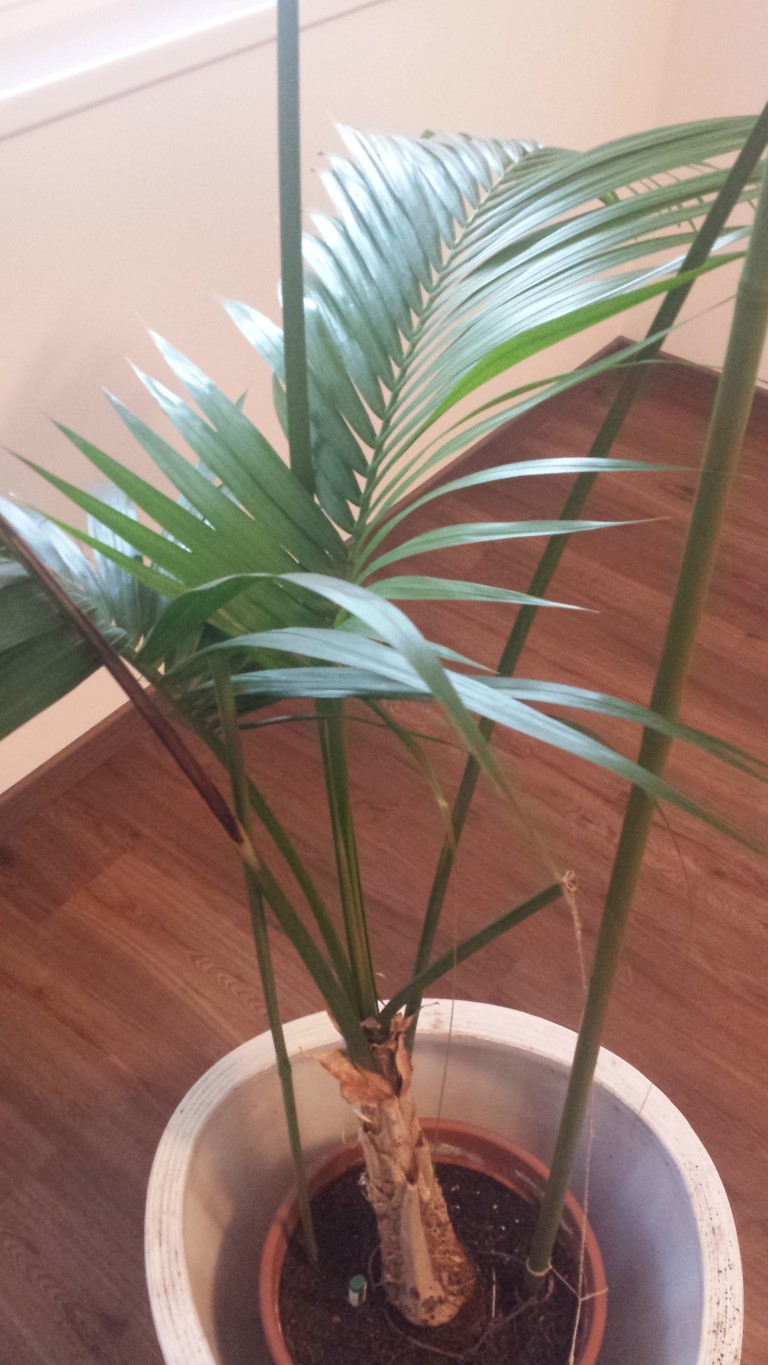 letztes Jahr hat sich meine Kentiapalme gut vom anfänglich falschen Pflegeumgang erholt. Im Laufe des Jahres sind neue Triebe nachgekommen und weitere sind im Anmarsch. Die älteren langen Wedel, welche vor 2 Jahren aufgrund von Sonnenschäden teilweise braun waren, wurden damals gestutzt oder abgeschnitten, siehe Bilder.