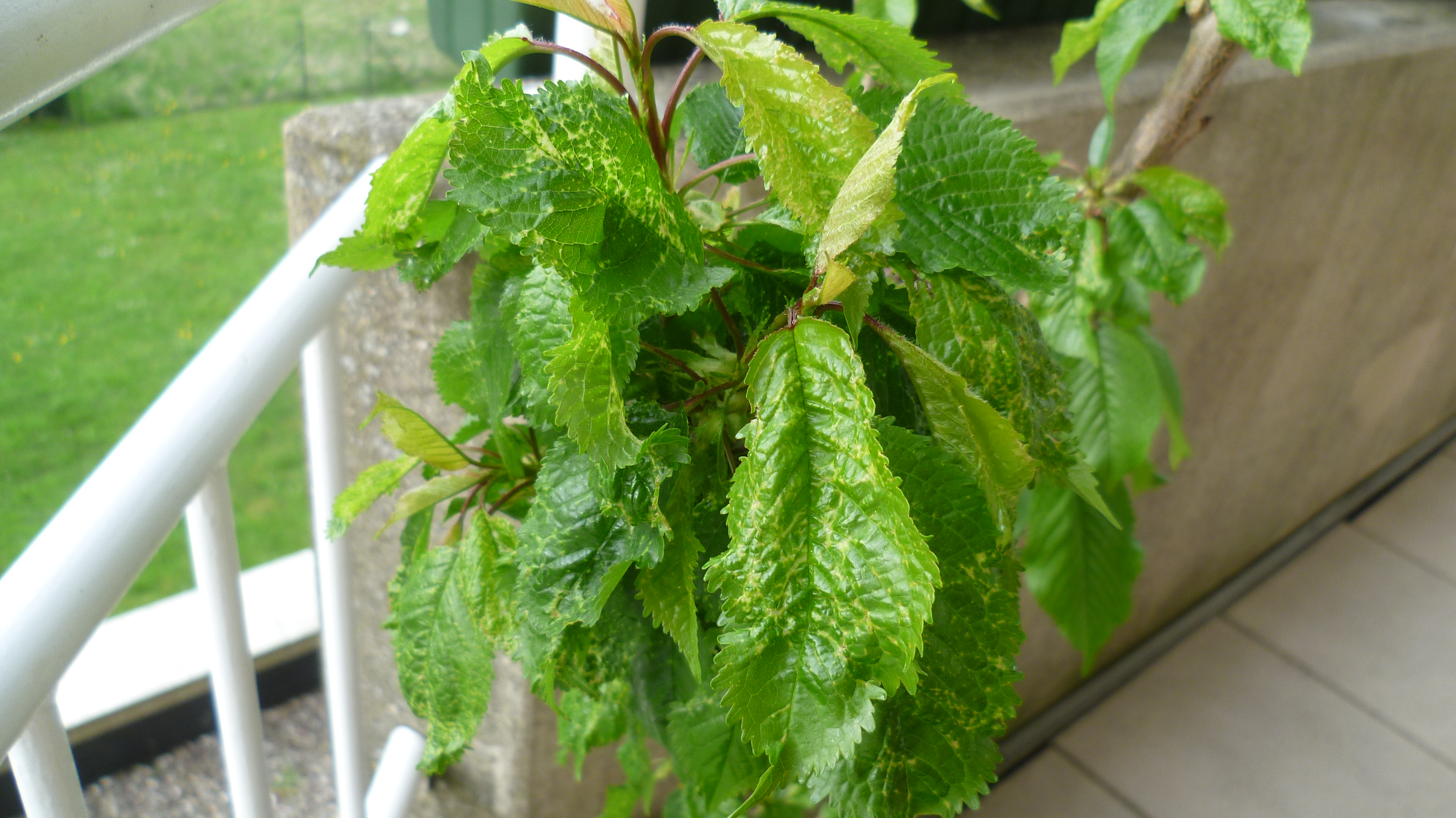 verschiedene Blätter meines Kirschbaums haben vielleicht einen Pilz, wer kann mir sagen was es ist? Siehe Fotos