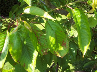 warum werden die Kirschbaumblätter teilweise rostig, habe vor 8 Wochen Kies um den Baum gelegt ( als Mähkante und fürs Auge ) der Pfirsich im ersten Bild sieht auch nicht glücklich aus.