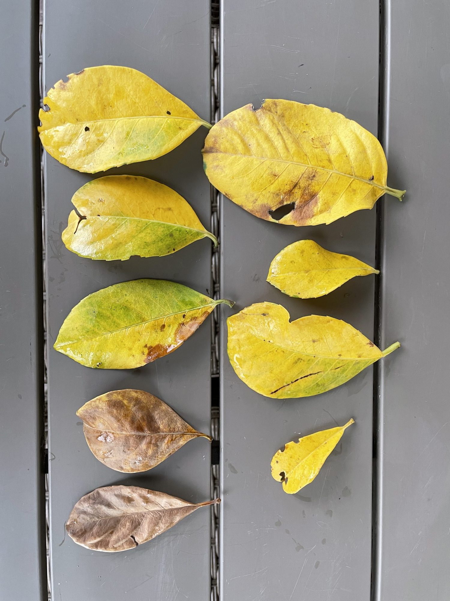 Seit ein paar Wochen allerdings besteht mein eigentliches Problem: Die Pflanzen bekommen plötzlich vermehrt gelbe Blätter, die dann braun werden und abfallen. Vor zwei Tagen habe ich alle gelben Blätter entfernt, es war ein halber Eimer voll. Heute schon wieder so viele. Manche der gelben Blätter sind angefressen, andere wiederum völlig intakt. Die gelben Blätter sind gefühlt eher im "inneren" der Pflanzen, also nicht die Blätter die direkt dem Sonnenlicht ausgesetzt sind.