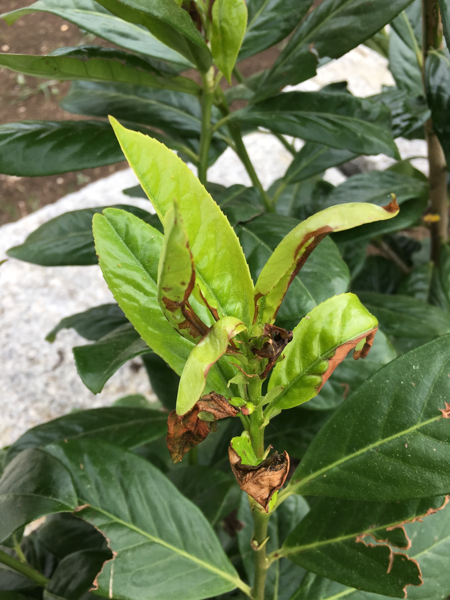 Nun treiben die Pflanzen kräftig aus. Jedoch habe ich mit Erschrecken festgestellt, dass an einigen der neu ausgetriebenen Blättern braune Stellen sichtbar sind. An einer Pflanze scheinen die Blätter nach dem Austreiben bereits sofort zu welken. Kann mir jemand weiterhelfen, was den Pflanzen fehlen könnte? Bin für jegliche Tipps dankbar!