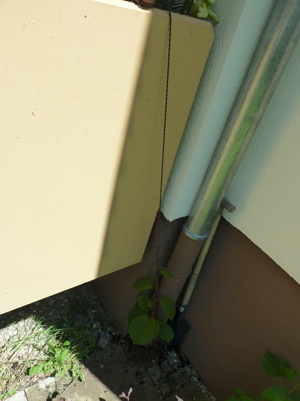 Mhh... also ich finde den "kleinen" Platz neben dem Fallrohr auch nicht so gut, schon gar nicht für 2 schnellwachsende Kiwis