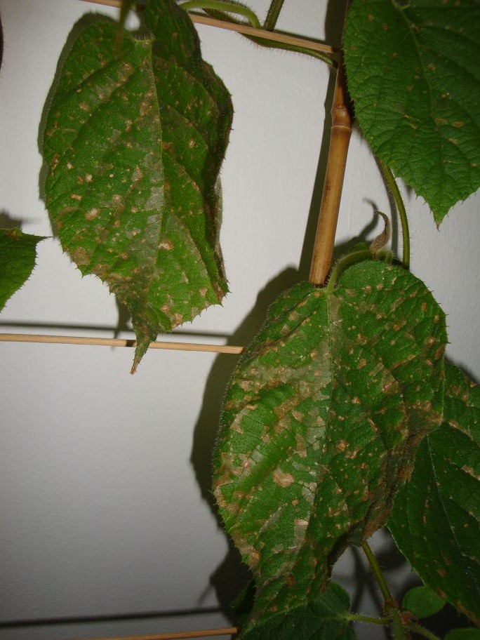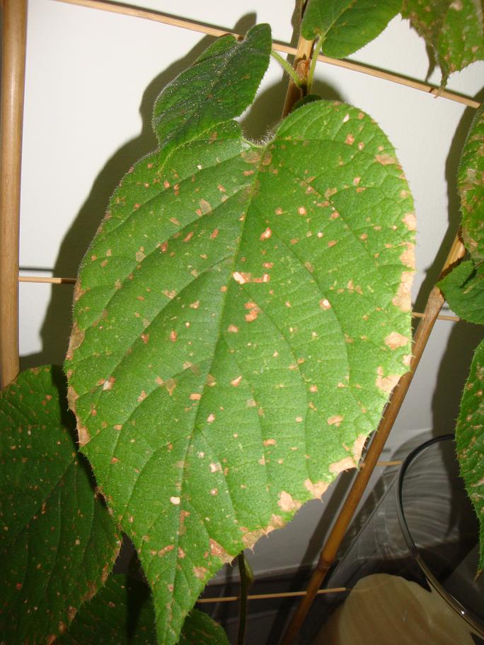 gezogen hab ich sie letzten dezember aus einem samen einer supermarkt kiwi. das problem traff ziemlich schnell auf nachdem sie größer geworden ist und erste richtige blätter bekommen hat. da hab ich mir aber keine sorgen gemacht weil sie so schnell gewachsen ist und soviele blätter bekommen hat, dass das problem nicht wirklich aufgefallen ist.