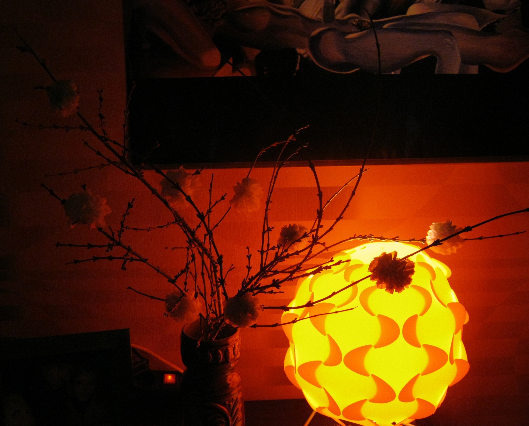 habe heute abend drei zweige vom hof mit weißen serviettenblumen bestückt. ein bißchen frühling in die wohnung gebracht