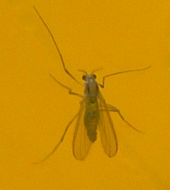 Ich bin grad in einem anderen Forum über eine Diskussion gestolpert, und ich finde diese Mücken sehen der hier ein Stück ähnlich - demnach könnte es wohl eine Zuckmückenart sein