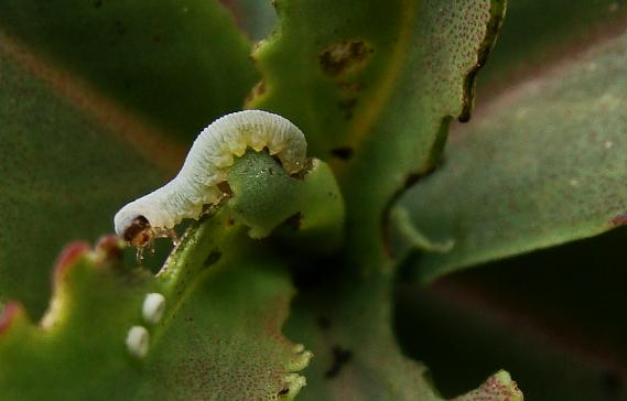 .... mit schwarzem Kopf fressen sich gerade an einer Fetthenne bei mir satt. Sie sehen so ähnlich aus wie die Larven der Trauermücke, aber ich bezweifle, dass es die sind. Sie sitzen in den Blattspitzen der Pflanze. Es sind einige große dabei, so ca. 7mm, wenn sie sich mal nicht kringeln, und auch ganz winzige.