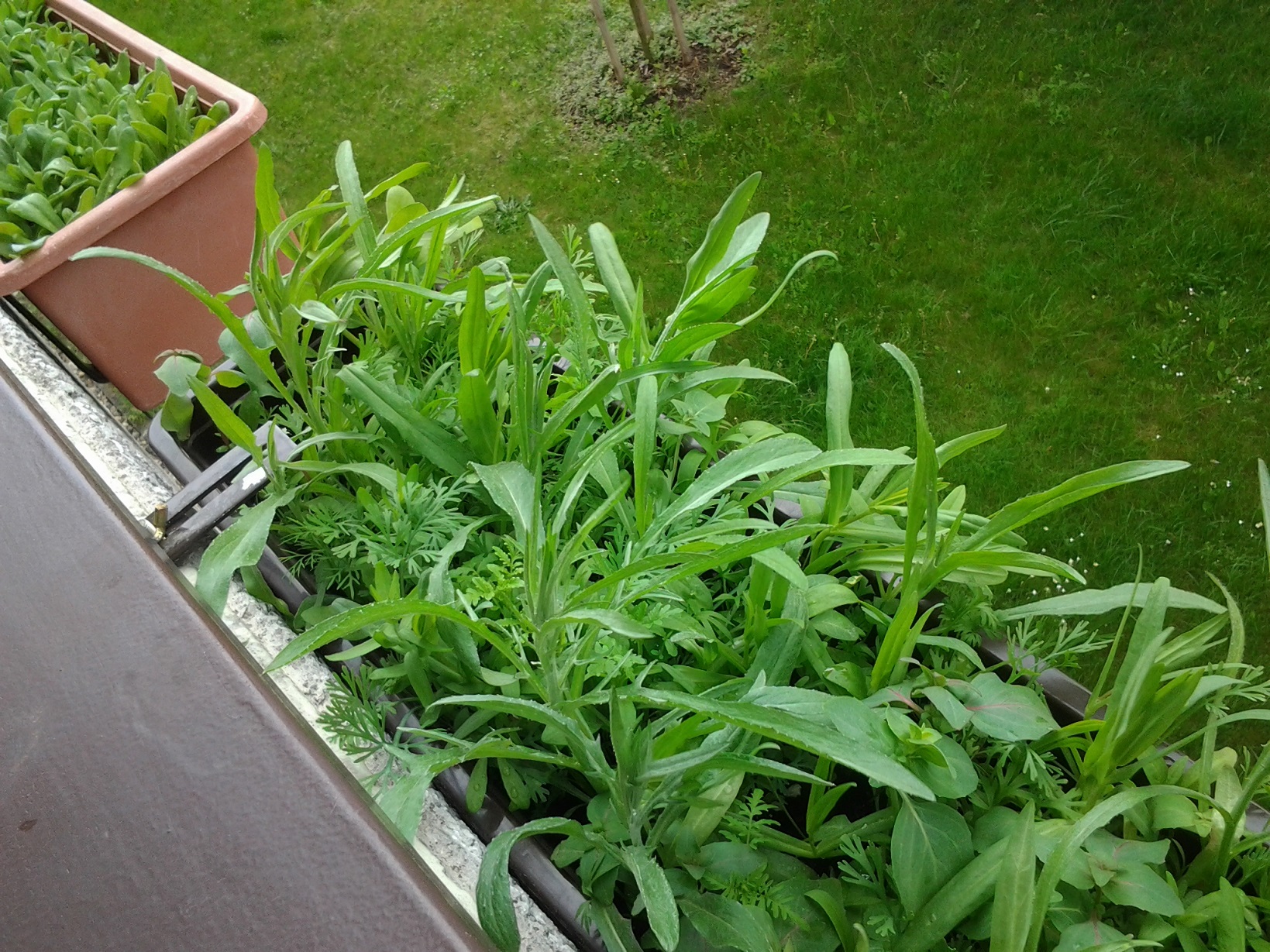 Auf meinem Balkon habe ich Blumen allerlei gesäht, sprich viele versch. Blumenarten aus so einer fertigen Dose ( bitte verurteilt mich nicht )