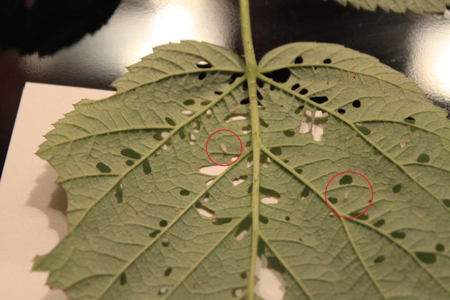 Nun habe ich aber leider auf einer Himbeere viele kleine Löcher auf den Blättern und bräunliche Verfärbungen darum herum?