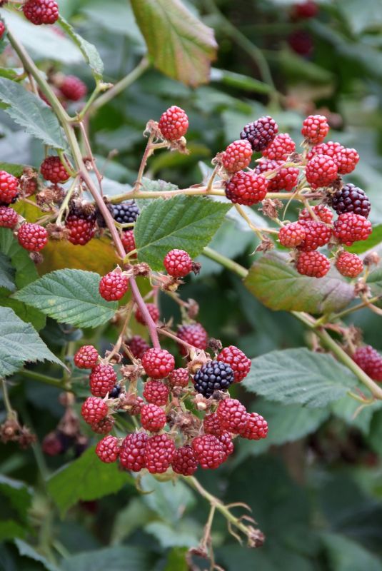 Weitaus bekannter sind hingegen Beerensträucher wie Johannisbeere und Stachelbeere (Ribes), Himbeere oder Brombeere (Rubus). Diese kleinen Büsche sind pflegeleicht, beanspruchen im Garten nur wenig Platz und können auch in größeren Töpfen gedeihen. Einige fühlen sich sogar in halbschattigen Lagen wohl. Je nach Sorte lassen sich ihre Früchte bereits im Frühsommer ernten. Heidelbeer- oder Preiselbeersträucher (Vaccinium) bevorzugen kalkarme Böden bzw. humusreiches Topfsubstrat und bleiben je nach Sorte klein und kompakt. Wenig Platz benötigen auch Obstgehölze, die als Spalier gezogen wurden, so zum Beispiel aus dem breiten Sortenspektrum von Apfel, Birne, Pflaume, Pfirsich oder Aprikose. Durch seinen strengen und schmalen Wuchs ist Spalierobst nicht nur platzsparend, sondern jede Frucht bekommt so auch besonders viel Licht und kann ideal ausreifen. Zudem lässt sich das Obst einfach ernten. Der große Vorteil von Spalierobst ist außerdem, dass man es wunderbar zur Wandbegrünung oder mit einem Gerüst als Raumteiler im Garten nutzen kann. Es verschönert triste Haus- oder Garagenwände oder bildet einen grünen Hintergrund für den Sitzplatz am Haus. Eindrucksvoller Fassadenschmuck sind auch fruchttragende Kletterpflanzen wie der Echte Wein (Vitis) oder die Kiwi (Actinidia), deren Früchte im September bzw. Oktober reif sind.