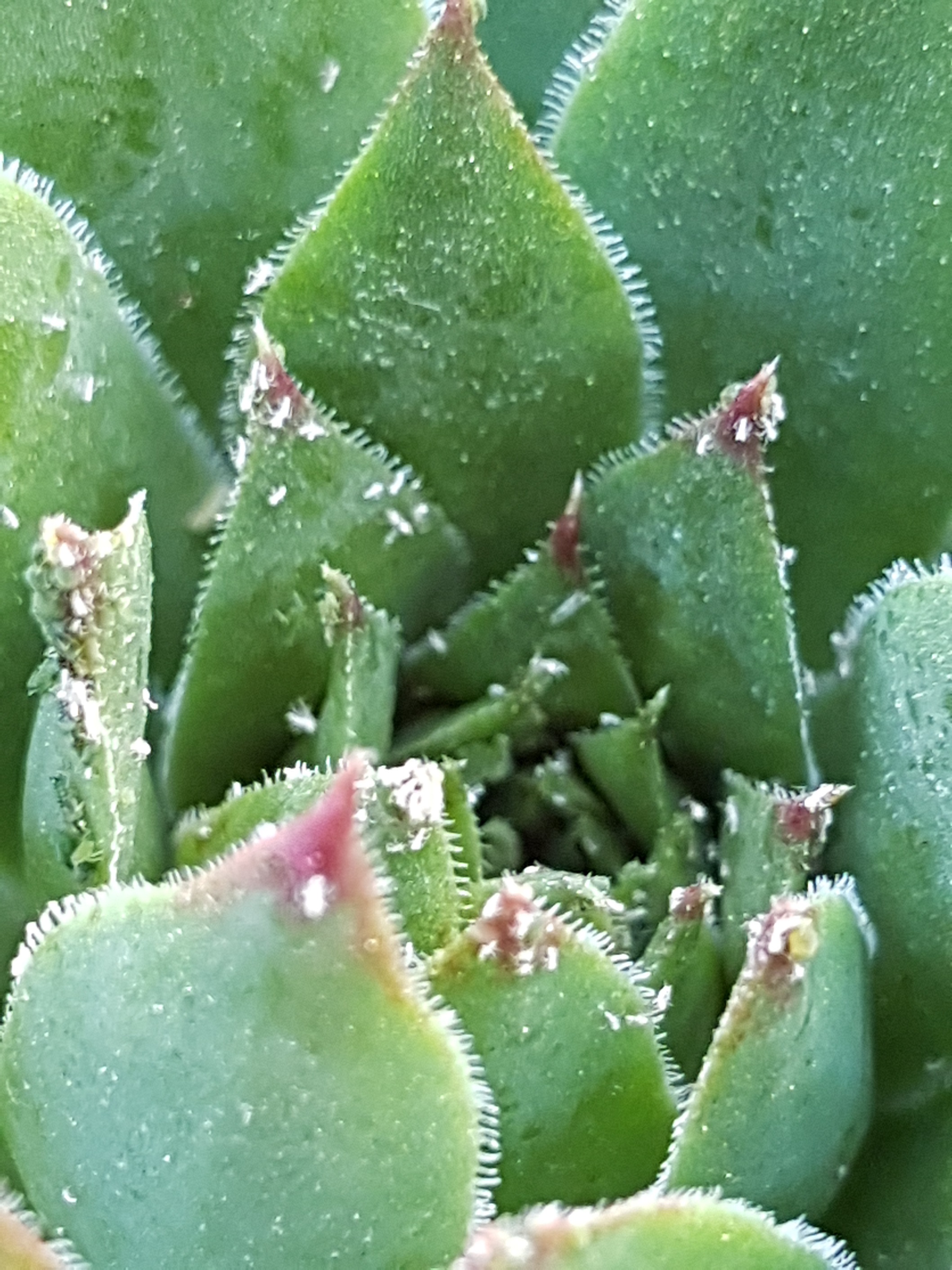 als ich vorhin meinen Hauswurz betrachtet habe, sind mir so kleine schwarze Viecher aufgefallen, sowie weiße kleine Punkte an der Pflanze - vermutlich die Larven?