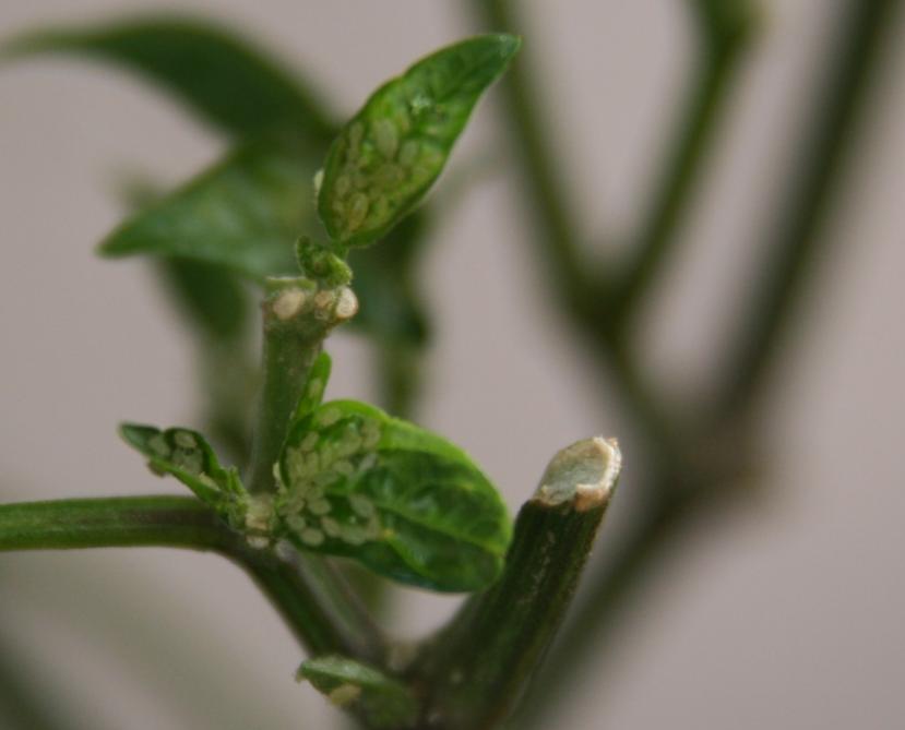 Habe sie dann auf den Balkon gestellt weil ich mir dachte draußen ist die Luftfeuchtigkeit viel höher weil es auch in letzter Zeit viel geregnet hat. Doch heute beim gießen ist mir aufgefallen dass meine Chili Pflanzen schon wieder von irgendwelchem Krabbelzeug befallen sind.